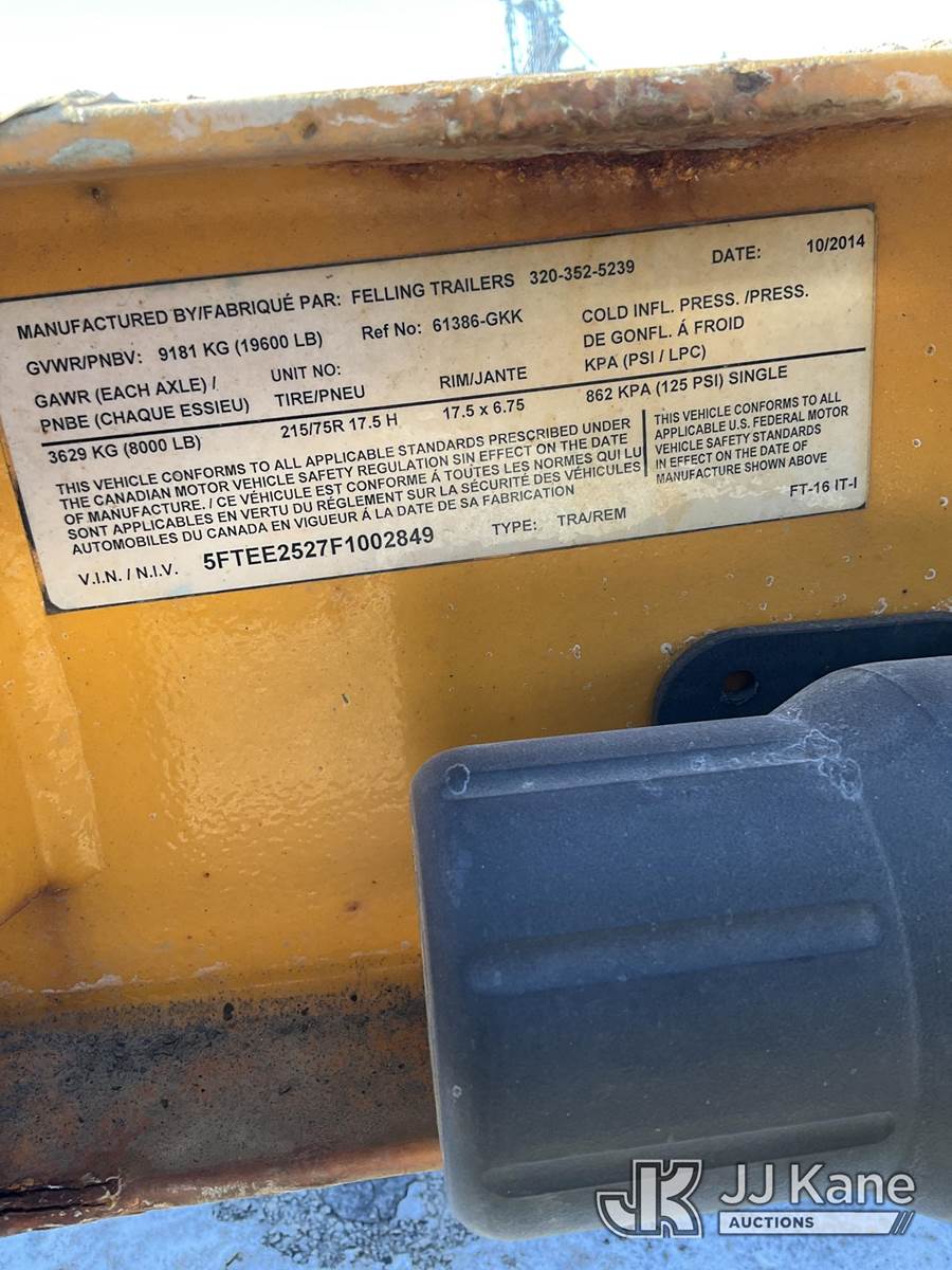 2015 Felling Trailers FT-16-IT-1 T/A Tagalong Equipment Trailer, Overall- 26ft long, Level Deck- 19ft long, Tilt Deck- 16ft long, Between Wheels- 81in wide This is a Titled Item NOTE: This unit is being sold AS IS/WHERE IS via Timed Auction and is located in South Beloit, IL. Inspection & preview days for this unit are the 2 business days prior to the first day of items closing for this auction, item is located at 14354 Dearborn Ave South Beloit, IL and hours of operations are 8a-4p. For pre-sale questions, please contact Derek Eklund at (608) 904-0618 or (derek.eklund@jjkane.com). (Buyer is responsible for removal. Assistance by consignor or JJ Kane Auctions is not assured.)