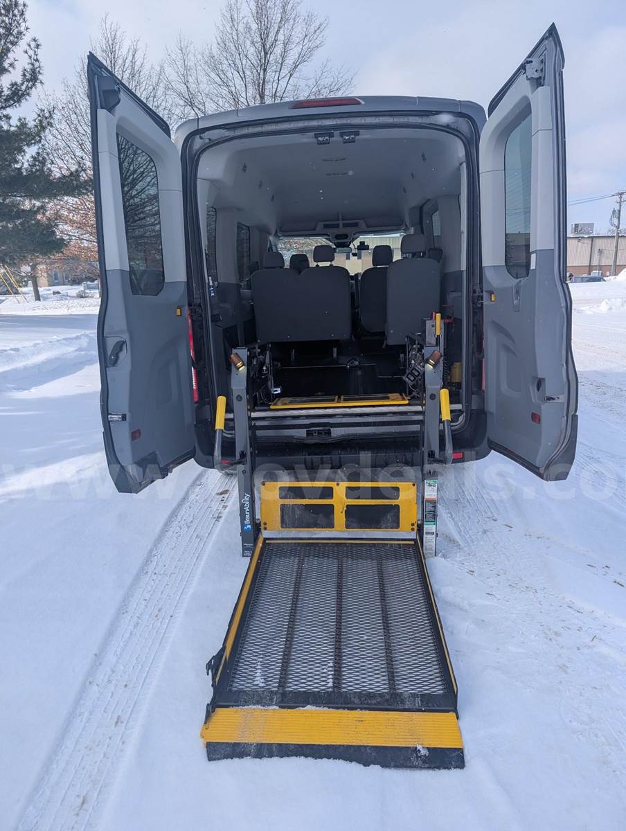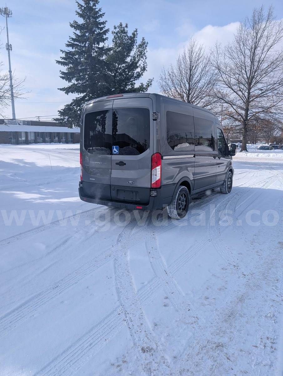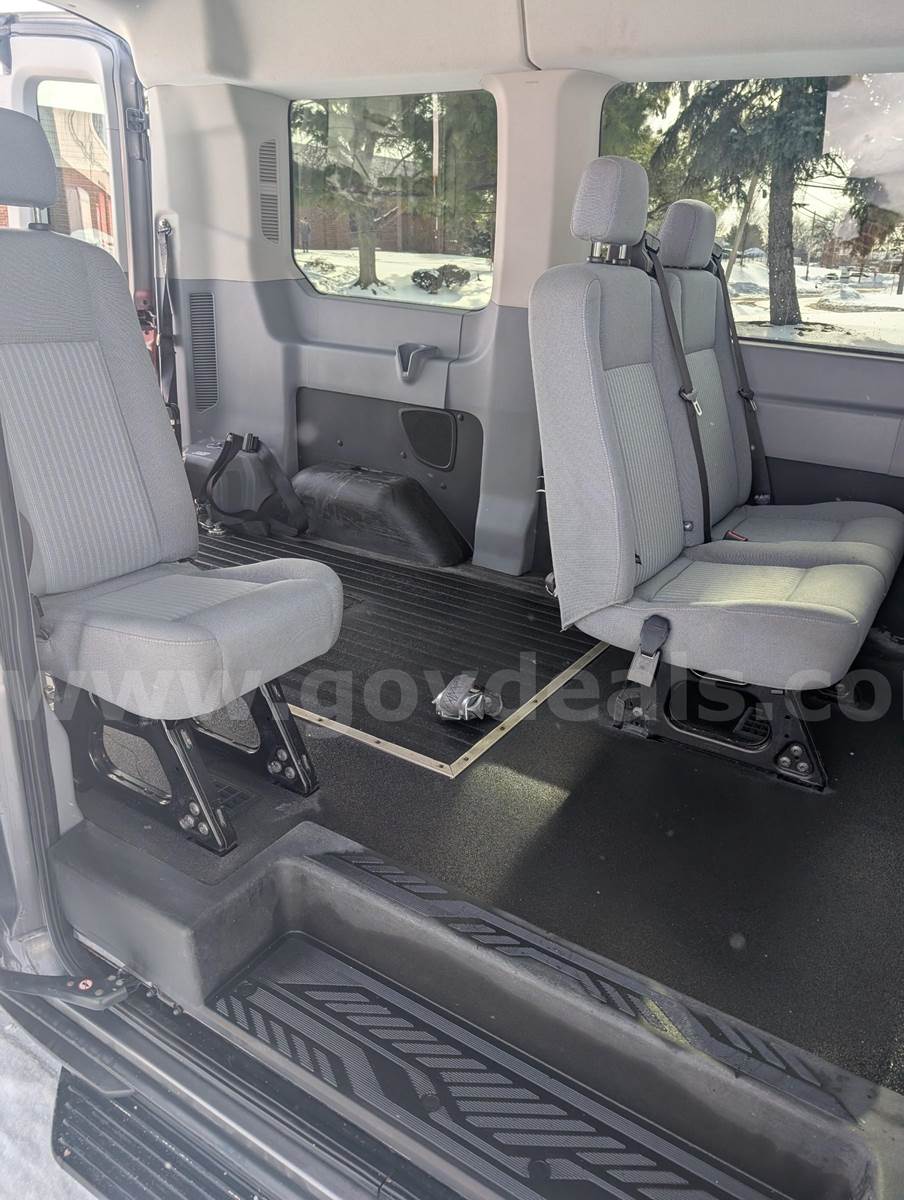 2015 Ford Transit 150 Wagon Med. Roof XL w/Sliding Pass. 130-in. WBPASSENGER VAN, 3.5L V6 DOHC 24V. 4 passenger 1 wheelchair position-Wheelchair accessible Starts, runs, and drives Removed from service – 2/1/2026 – No Maintenance records Driver and passenger seat have normal wear and stains Minor paint chipping, scratches, rock chips, sticker impression etc. Damage on driver side, Missing small side panel-See photo Backup camera and beeper does work Normal wear and tear to interior Radio - stock AM/FM A/C and heater good W/C Floor restraints and securement belts do come with the van. Braun rear entry lift does work properly at the time of listing, Lift counter is at 12815 Tires are in good condition Check Engine lights on Code PO 306