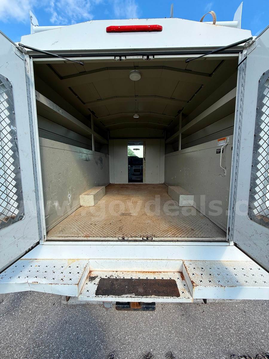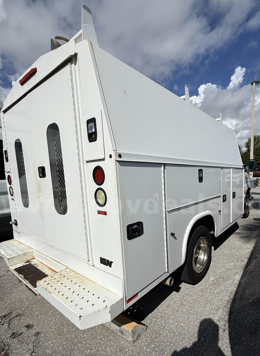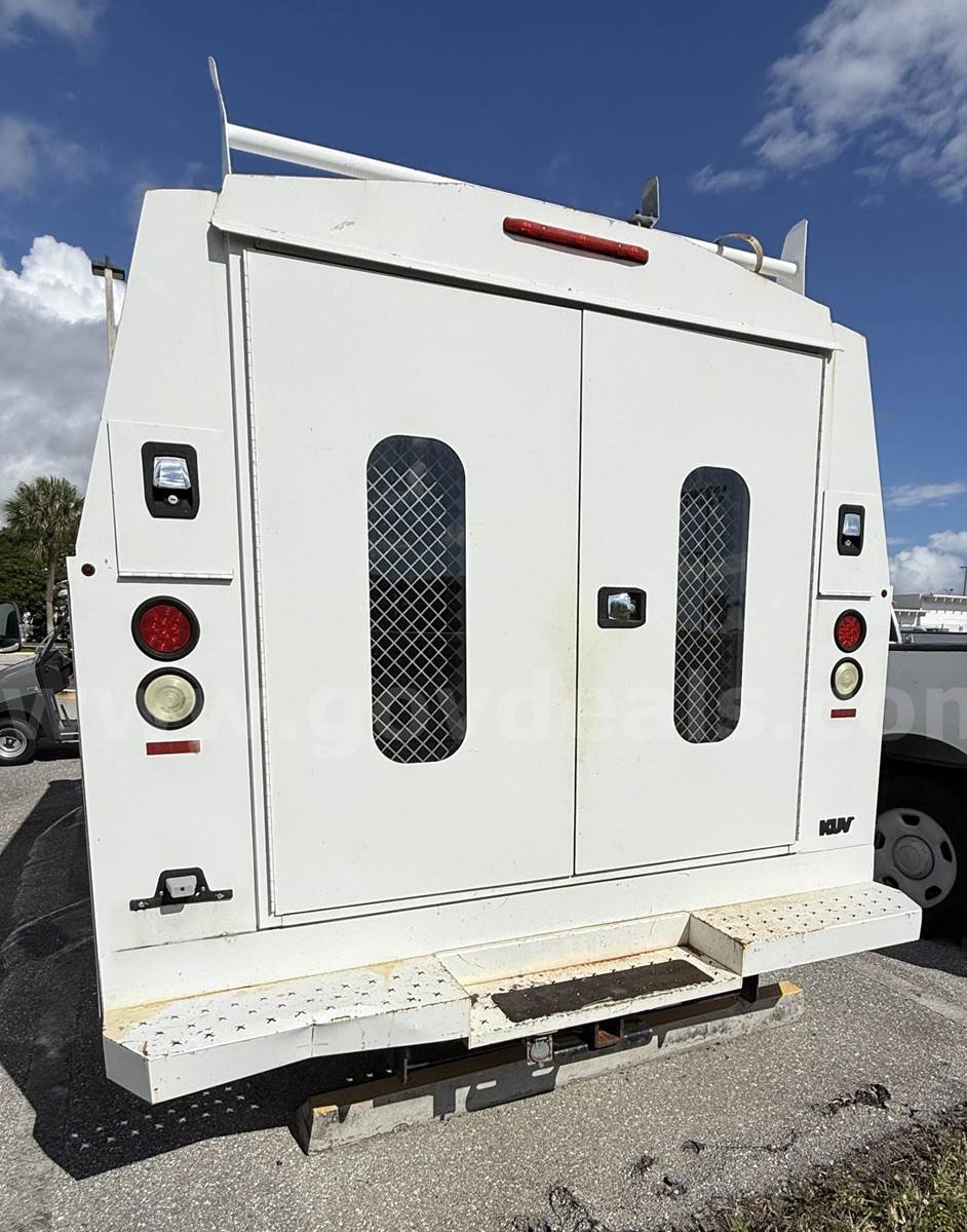 Unit features power windows and power door locks. Outfitted with a Knapheide utility/service body, suitable for maintenance, construction, or fleet use. Vehicle was previously used in a fleet environment. Normal wear consistent with age and use should be expected. No warranties expressed or implied.