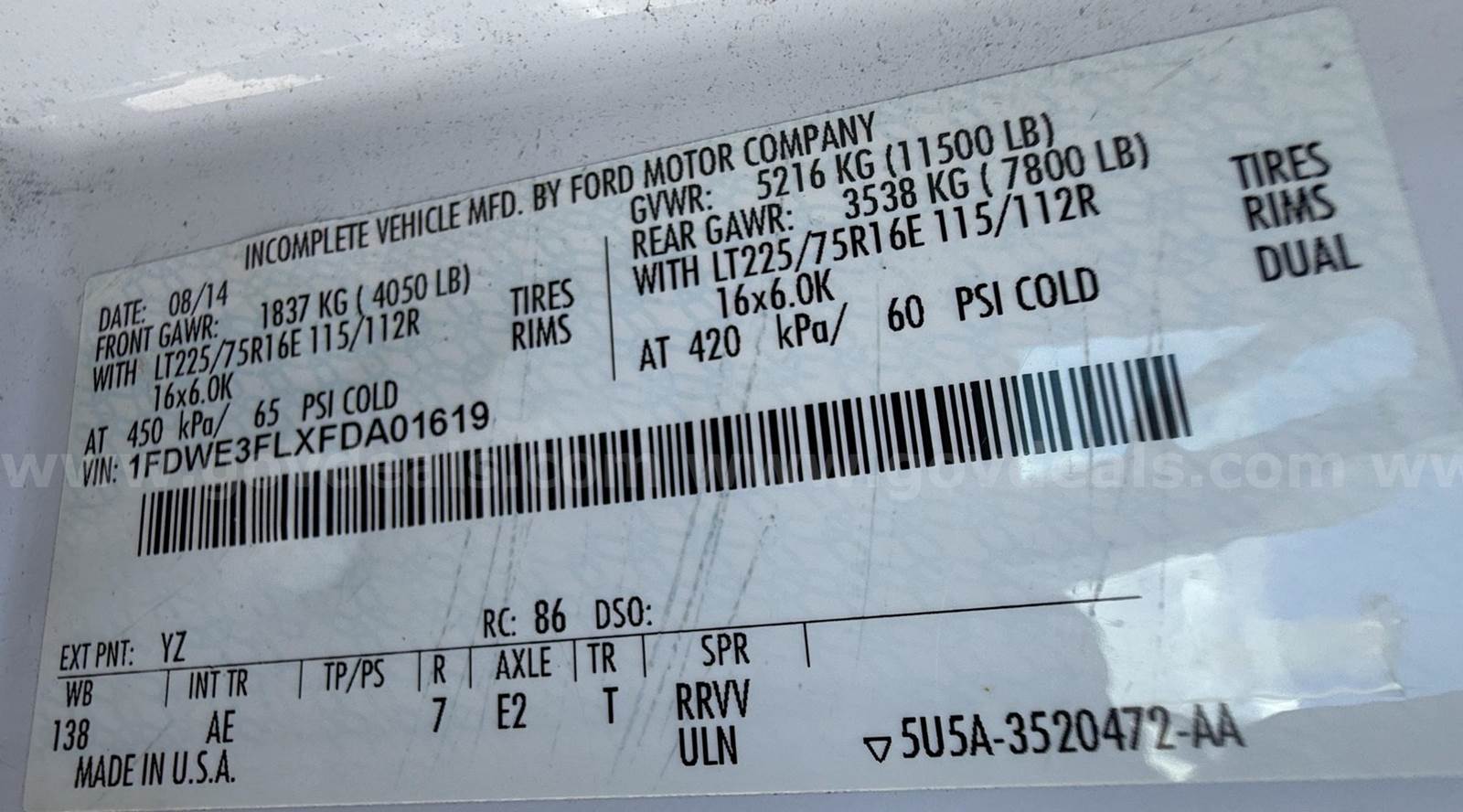 2015 Ford E-350 Super Duty Cutaway equipped with a 5.4L V8 SOHC 16-valve gasoline engine and automatic transmission.