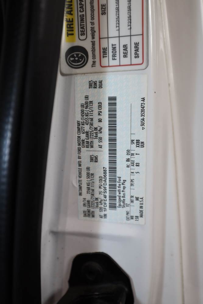 2015 Ford E-450 Super Duty Phoenix Bus. VIN: 1FDFE4FS9FDA06887. Engine: 6.8L V10 SMPI Gasoline. Odometer reading: 95,333. Seller notes: Does not run/drive, Battery issue, ADA Compliance Vehicle (Wheelchair Lift, Additional seat enhancements).