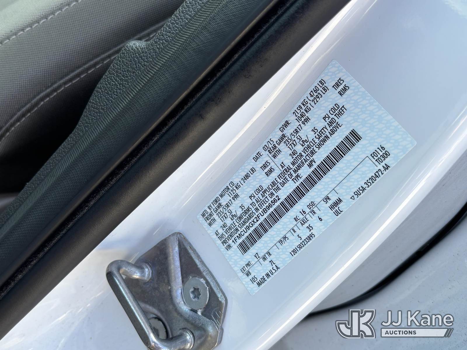 2015 Ford Escape 4x4 4-Door Sport Utility Vehicle, 4-cyl gas, Auto, A/C, (65,794 miles) (Runs & Moves, Body Damage) This is a Titled Item NOTE: This unit is being sold AS IS/WHERE IS via Timed Auction and is located in Plymouth Meeting, PA. Inspection & preview days for this unit are the 2 business days prior to the first day of items closing for this auction, item is located at 1402 Conshohocken Rd Plymouth Meeting, PA 19462 and hours of operations are 8a-4p. For pre-sale questions, please contact Bruce Thomas @ (267) 887-0392 or bruce.thomas.jr@jjkane.com. (Buyer is responsible for removal. Assistance by consignor or JJ Kane Auctioneers is not assured.)