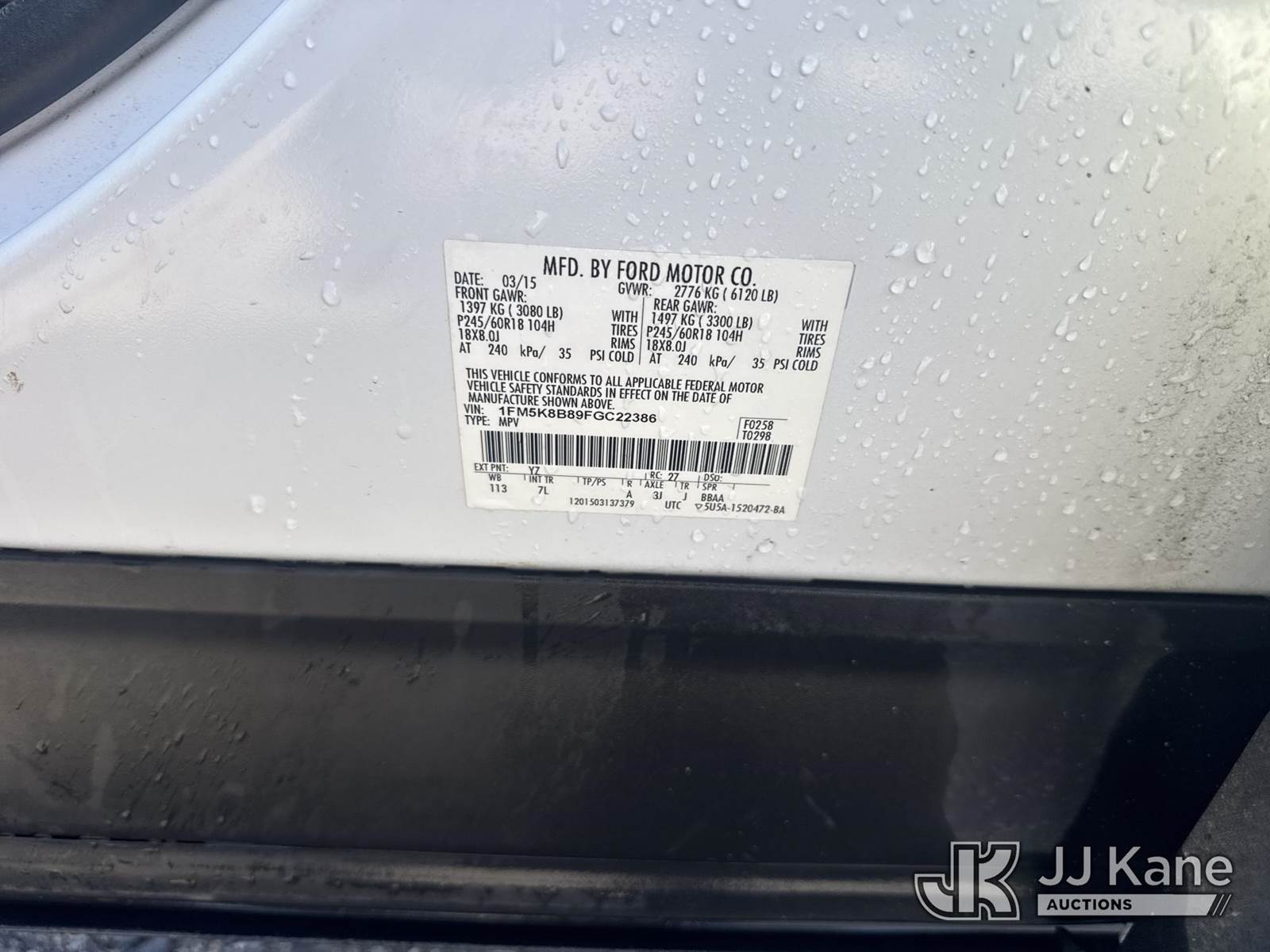 2015 Ford Explorer 4x4 4-Door Sport Utility Vehicle, 6-cyl gas, Auto, A/C, with 3rd row seating, (197,009 miles) (Runs & Moves) (Body/Paint Damage) This is a Titled Item NOTE: This unit is being sold AS IS/WHERE IS via Timed Auction and is located in China Grove, NC. Inspection & preview days for this unit are the 2 business days prior to the first day of items closing for this auction, item is located at 820 E NC Hwy 152 China Grove, NC 28023 and hours of operations are 8a-4p. For pre-sale questions, please contact Office Staff @ (704) 674-1113. (Buyer is responsible for removal. Assistance by consignor or JJ Kane Auctioneers is not assured.)