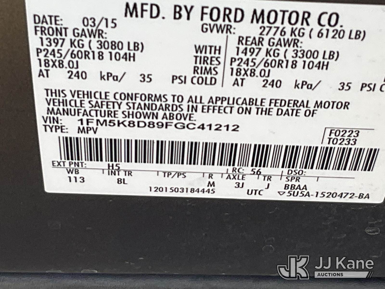 2015 Ford Explorer 4x4 4-Door Sport Utility Vehicle, 6-cyl gas, Auto, A/C, (119,359 miles) (Runs & Moves) This is a Titled Item NOTE: This unit is being sold AS IS/WHERE IS via Timed Auction and is located in Salt Lake City, UT. Inspection & preview days for this unit are the 2 business days prior to the first day of items closing for this auction, item is located at 2353 N Redwood Rd Salt Lake City, UT 84116 and hours of operations are 8a-4p. Titles executed exactly as bidder registered. Ensure your name and/or business name and address in JJ Kane and/or ProxiBid is correct before bidding. For pre-sale questions, please contact Office Staff @ (801) 519-0123. (Buyer is responsible for removal. Assistance by consignor or JJ Kane Auctions is not assured.)
