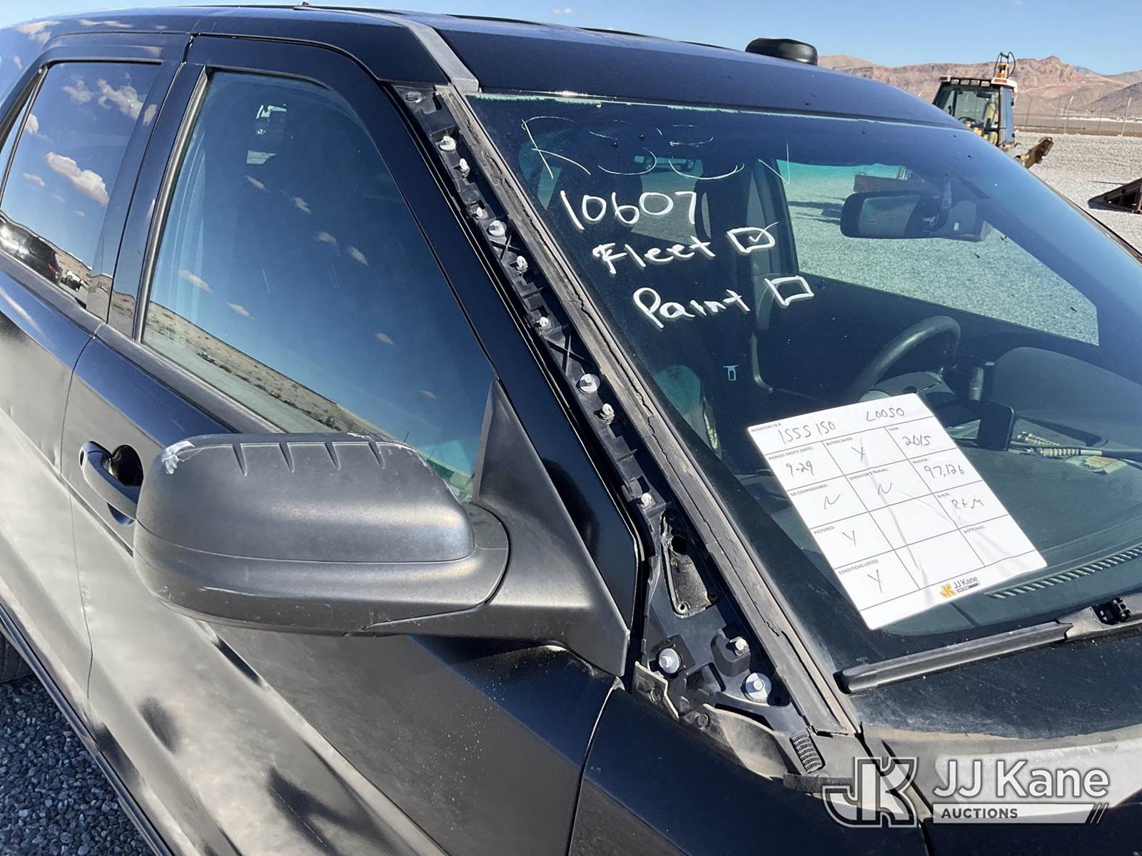 2015 Ford Explorer AWD Police Interceptor 4-Door Sport Utility Vehicle, 6-cyl gas, Auto, A/C, (97,126 miles) (Runs & Moves) (Center Console Removed, Body/Paint Damage) This is a Titled Item NOTE: This unit is being sold AS IS/WHERE IS via Timed Auction and is located in Las Vegas, NV. Inspection & preview days for this unit are the 2 business days prior to the first day of items closing for this auction, item is located at 14655 Grand Valley Pkwy Las Vegas, NV 89165 and hours of operations are 8a-4p. Titles executed exactly as bidder registered. Ensure your name and/or business name and address in JJ Kane and/or ProxiBid is correct before bidding. For pre-sale questions, please contact Office Staff @ (801) 519-0123 and provide sale date and lot number. Las Vegas Dealer License Number DLR000053086 / OHV000053094. (Buyer is responsible for removal. Assistance by consignor or JJ Kane Auctioneers is not assured.)