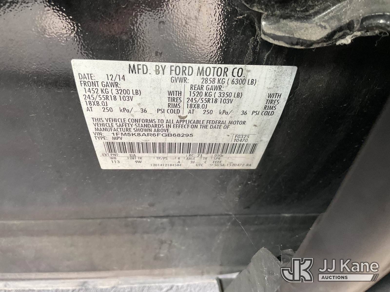 2015 Ford Explorer Police 4WD 4-Door Sport Utility Vehicle, s/n 1FM5K8AR6FGB68295, 3.7L V6 DOHC 24V Gas, 6-Speed Automatic, A/C, (116,137 miles) Open Recall, Remedy Not Yet Available, Vehicle is subject to an open NHTSA safety recall related to IN SOME OF THE AFFECTED VEHICLES, IT MAY BE POSSIBLE THAT SOME OF THE EXTERIOR A-PILLAR APPLIQUE TRIM CLIP ATTACHMENTS ARE NOT PROPERLY ENGAGED DUE TO IMPROPER ASSEMBLY OR REPAIR. IF THIS OCCURS, THE A-PILLAR APPLIQUE TRIM, WHICH BORDERS THE RIGHT AND LEFT SIDE OF THE WINDSHIELD, MAY BE LOOSE, MISSING OR BECOME DETACHED., but a remedy for this recall does not appear to be available. Dealer is not authorized to perform the recall repair. Periodically contact the manufacturer or check the VIN on the NHTSA website at www.safercar.govivin to determine whether a remedy for the recall is available. As soon as a remedy is available, arrange to have the recall remedied with a dealer from that make of car to make such repair. Open Recall, Remedy Not Yet Available, Vehicle is subject to an open NHTSA safety recall related to ON YOUR VEHICLE, THE REAR VIEW CAMERA COULD DISPLAY A BLANK OR DISTORTED IMAGE ON THE CENTER DISPLAY SCREEN WHEN THE VEHICLE IS IN REVERSE. YOU MAY ALSO RECEIVE A MESSAGE THAT THE REAR VIEW CAMERA IS UNAVAILABLE ON THE CENTER DISPLAY SCREEN., but a remedy for this recall does not appear to be available. Dealer is not authorized to perform the recall repair. Periodically contact the manufacturer or check the VIN on the NHTSA website at www.safercar.govivin to determine whether a remedy for the recall is available. As soon as a remedy is available, arrange to have the recall remedied with a dealer from that make of car to make such repair. (Runs & Moves) (Missing Horn, Interior Stripped Of Parts, Brake Lights Not Working, Open Recall, Remedy Not Yet Available) (Bidding Restricted to Licensed Vehicle Dealers Only), This is a Titled Item NOTE: This unit is being sold AS IS/WHERE IS via Timed Auction and is located in Jurupa Valley, CA. Inspection & preview days for this unit are the 2 business days prior to the first day of items closing for this auction, item is located at 4510 Muth Way Jurupa Valley, CA 92509 and hours of operations are 8a-4p. For pre-sale questions, please contact please contact Office Staff @ (310) 353-7140. Dealer License Number 45696. (Buyer is responsible for removal. Assistance by consignor or JJ Kane Auctions is not assured.)