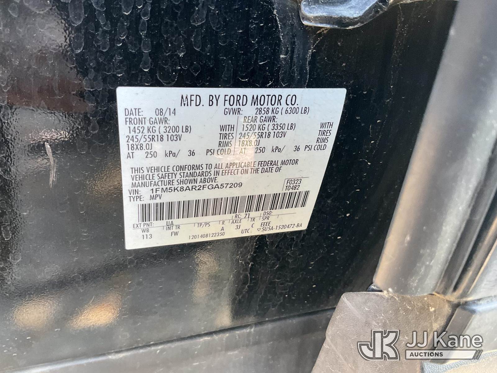 2015 Ford Explorer Police 4WD 4-Door Sport Utility Vehicle, s/n 1FM5K8AR2FGA57209, 3.7L V6 DOHC 24V GAS, 6-Speed Automatic, A/C, (30,500 miles) (Runs & Moves, This Vehicle Is Subject To An Open NHTSA Safety Recall Related To EXTERIOR A-PILLAR APPLIQUE MOLDING INSPECTION Recall Number 24S02 & REAR-VIEW CAMERA INSPECTION Recall Number 25SA9, But Remedies For These Recalls Do Not Appear To Be Available. The Dealer Is Not Authorized To Perform The Recall Repair. Periodically Contact The Manufacturer Or Check The VIN On The NHTSA Website At https://www.safercar.gov To Determine Whether A Remedy For The Recall Is Available. As Soon As A Remedy Is Available, Arrange To Have The Recall Remedied With A Dealer From That Make Of Car To Make Such A Repair.) (Bidding Restricted to Licensed Vehicle Dealers Only), This is a Titled Item NOTE: This unit is being sold AS IS/WHERE IS via Timed Auction and is located in Dixon, CA. Inspection & preview days for this unit are the 2 business days prior to the first day of items closing for this auction, item is located at 8668 Sparling Ln Dixon, CA 95620 and hours of operations are 8a-4p. For pre-sale questions, please contact JJ Kane Staff at (707) 678-8060 (dixon@jjkane.com). Dealer License Number 45696. (Buyer is responsible for removal. Assistance by consignor or JJ Kane Auctions is not assured.)