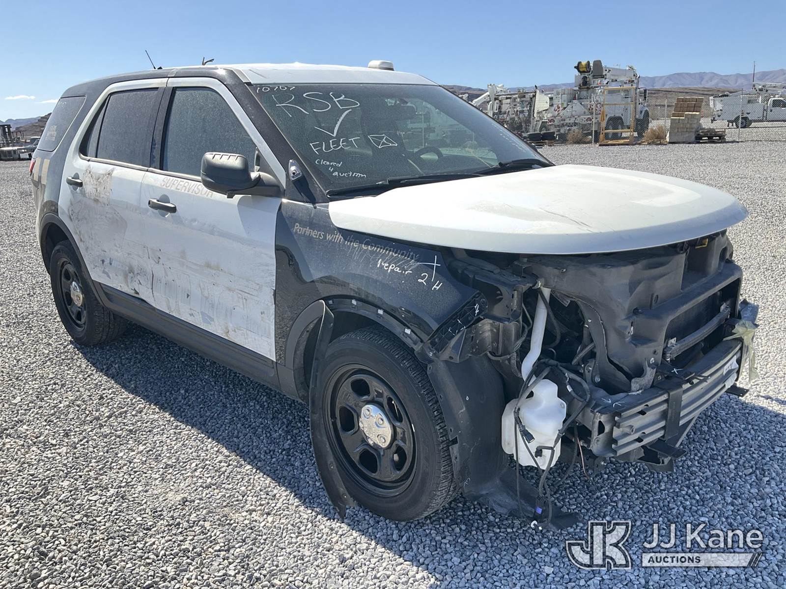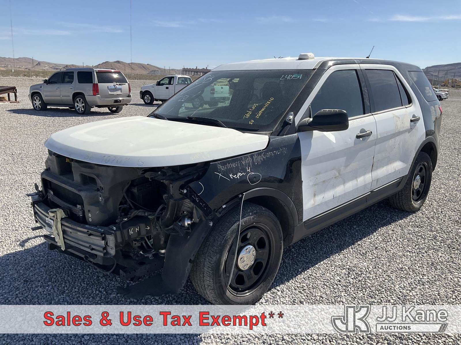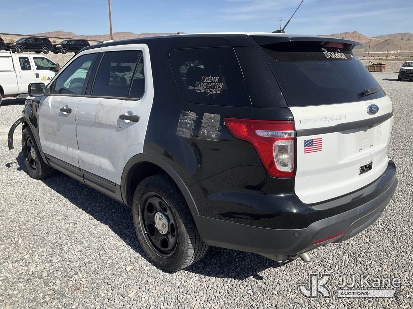 2015 Ford Explorer Police 4WD 4-Door Sport Utility Vehicle, 6-cyl gas, Auto, A/C, (76,717 miles) (Wrecked) (Runs & Moves) (Jump to Start) This is a Titled Item NOTE: This unit is being sold AS IS/WHERE IS via Timed Auction and is located in Las Vegas, NV. Inspection & preview days for this unit are the 2 business days prior to the first day of items closing for this auction, item is located at 14655 Grand Valley Pkwy Las Vegas, NV 89165 and hours of operations are 8a-4p. Titles executed exactly as bidder registered. Ensure your name and/or business name and address in JJ Kane and/or ProxiBid is correct before bidding. For pre-sale questions, please contact Office Staff @ (801) 519-0123 and provide sale date and lot number. Las Vegas Dealer License Number DLR000053086 / OHV000053094. (Buyer is responsible for removal. Assistance by consignor or JJ Kane Auctions is not assured.)