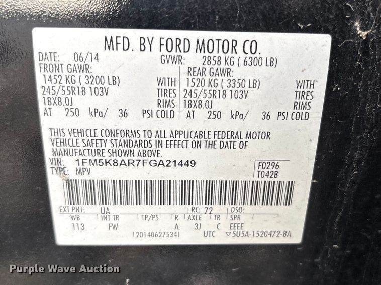 VIN: 1FM5K8AR7FGA21449