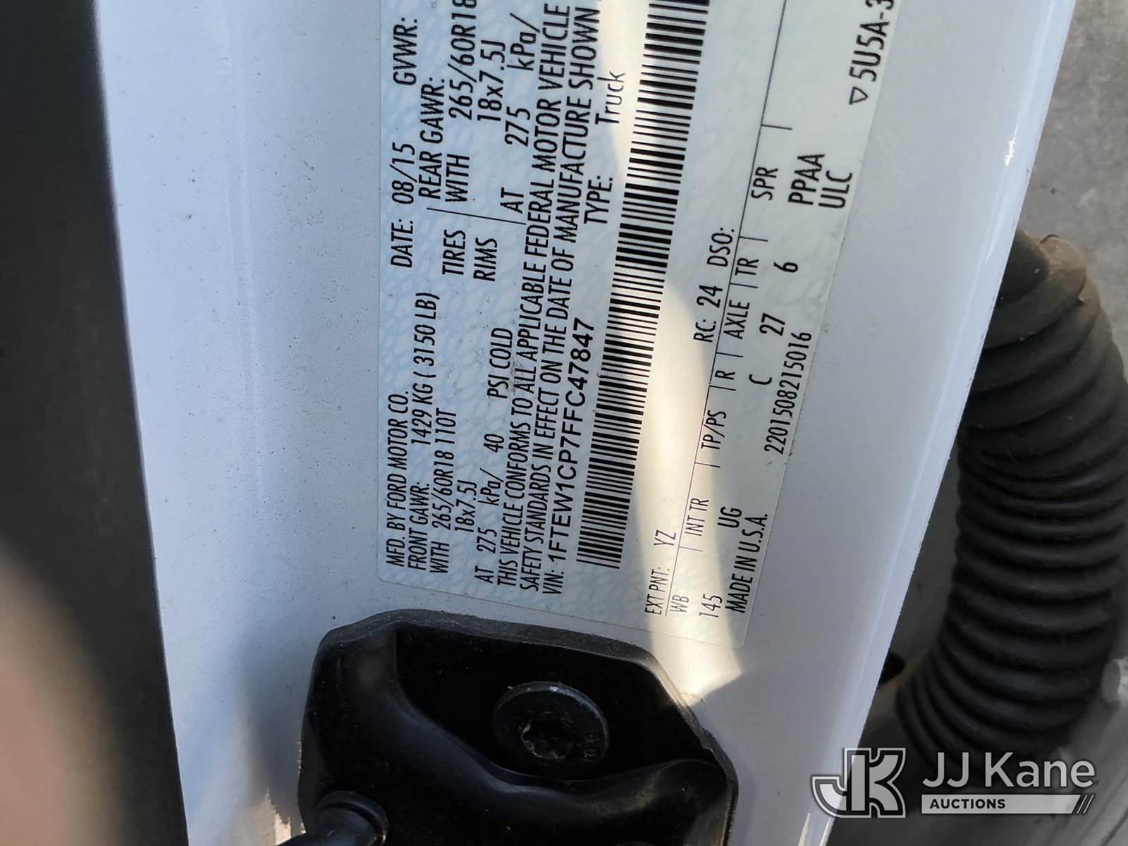 2015 Ford F-150 Crew-Cab Pickup Truck, 6-cyl gas, RWD, 6-Speed Automatic, A/C, True Mileage Unknown (Not Running, Condition Unknown, Wrecked, Airbags Deployed, No Key, Missing Parts) (FL Residents Purchasing Titled Items - tax, title & registration fees will be collected at the maximum rate of $400.00 under 25,999 and $800.00 for Over 26,000 and $250.00 trailers - Proof of insurance is mandatory; Out of State Residents Purchasing Title Items - tax will be collected based upon your state rate.) This is a Titled Item NOTE: This unit is being sold AS IS/WHERE IS via Timed Auction and is located in Thonotosassa, FL. Inspection & preview days for this unit are the 2 business days prior to the first day of items closing for this auction, item is located at 11720 N US 301 Thonotosassa, Fl 33592 and hours of operations are 8a-4p. For pre-sale questions, please contact Office Staff @ (813) 986-2485. (Buyer is responsible for removal. Assistance by consignor or JJ Kane Auctions is not assured.)
