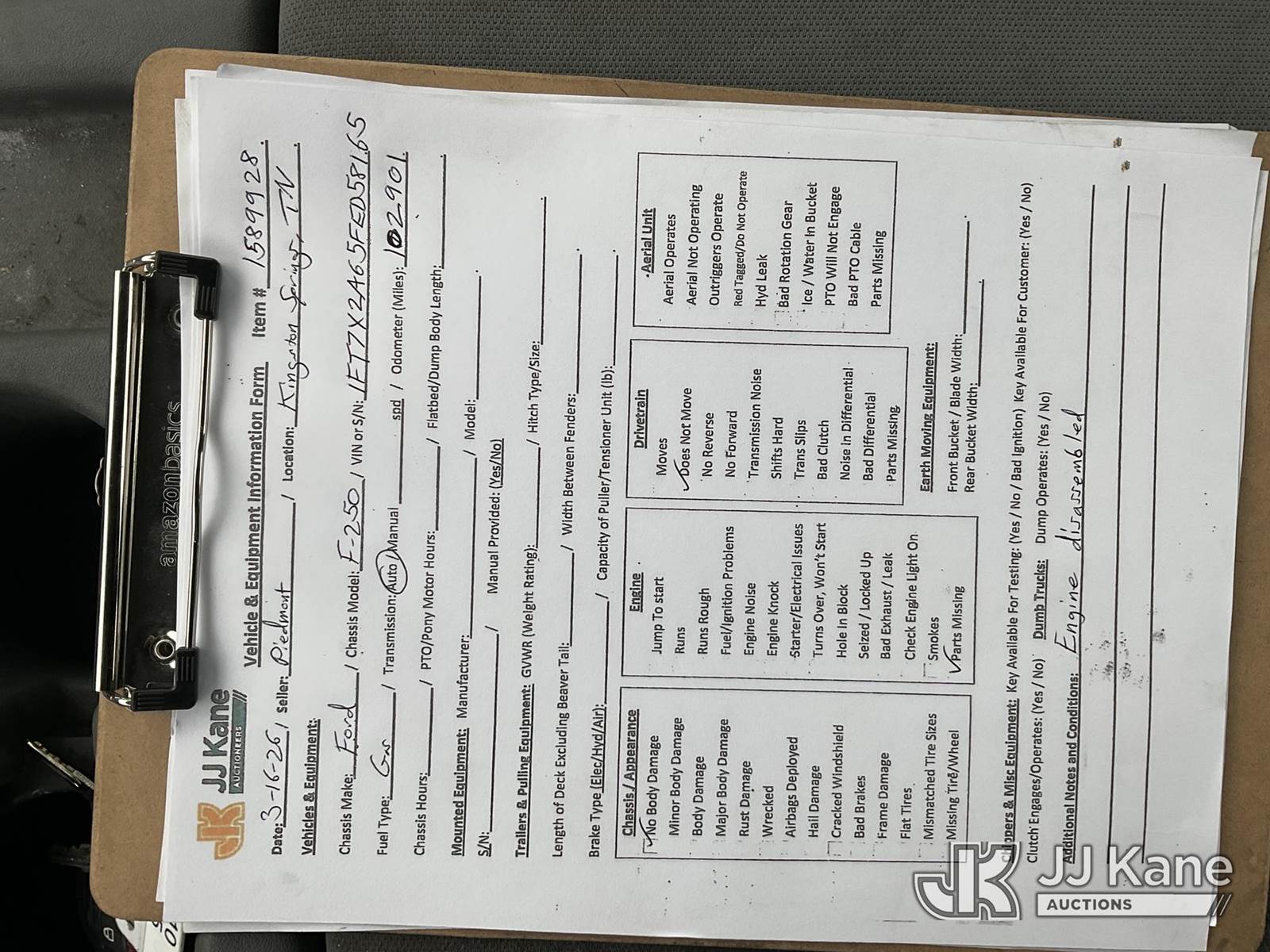 2015 Ford F-250 SD Extended-Cab Pickup Truck, 6.2L V8 OHV 16V 2wd, GAS, 6-Speed Automatic, A/C, (102,901 miles) Bad Engine (Not Running, Condition Unknown) (Parts Missing, Check Engine Light On) This is a Titled Item NOTE: This unit is being sold AS IS/WHERE IS via Timed Auction and is located in Kingston Springs, TN. Inspection & preview days for this unit are by appointment only; please contact us at contact@jjkane.com or 84-Go-JJKane for more details. (Buyer is responsible for removal. Assistance by consignor or JJ Kane Auctions is not assured.)