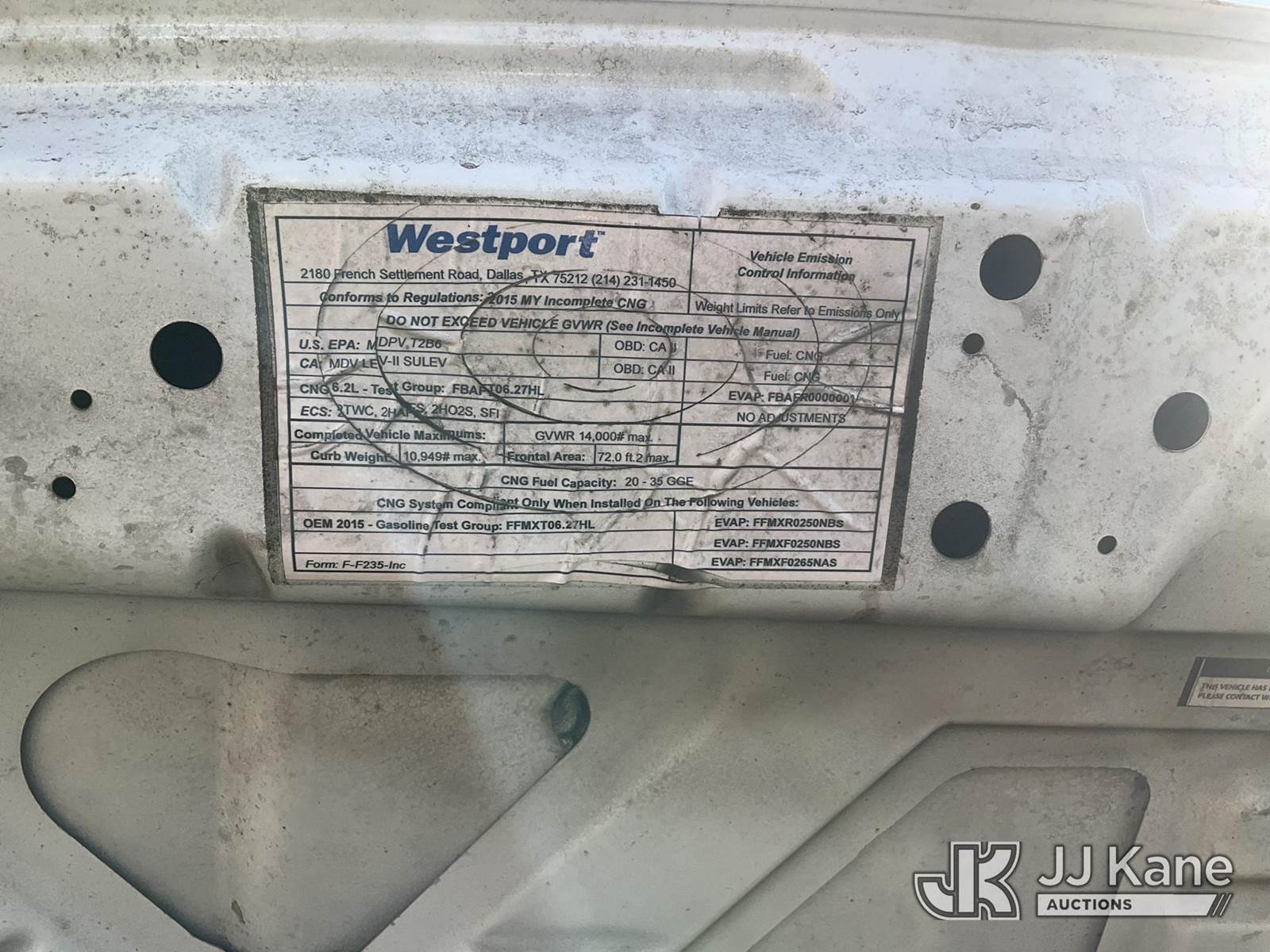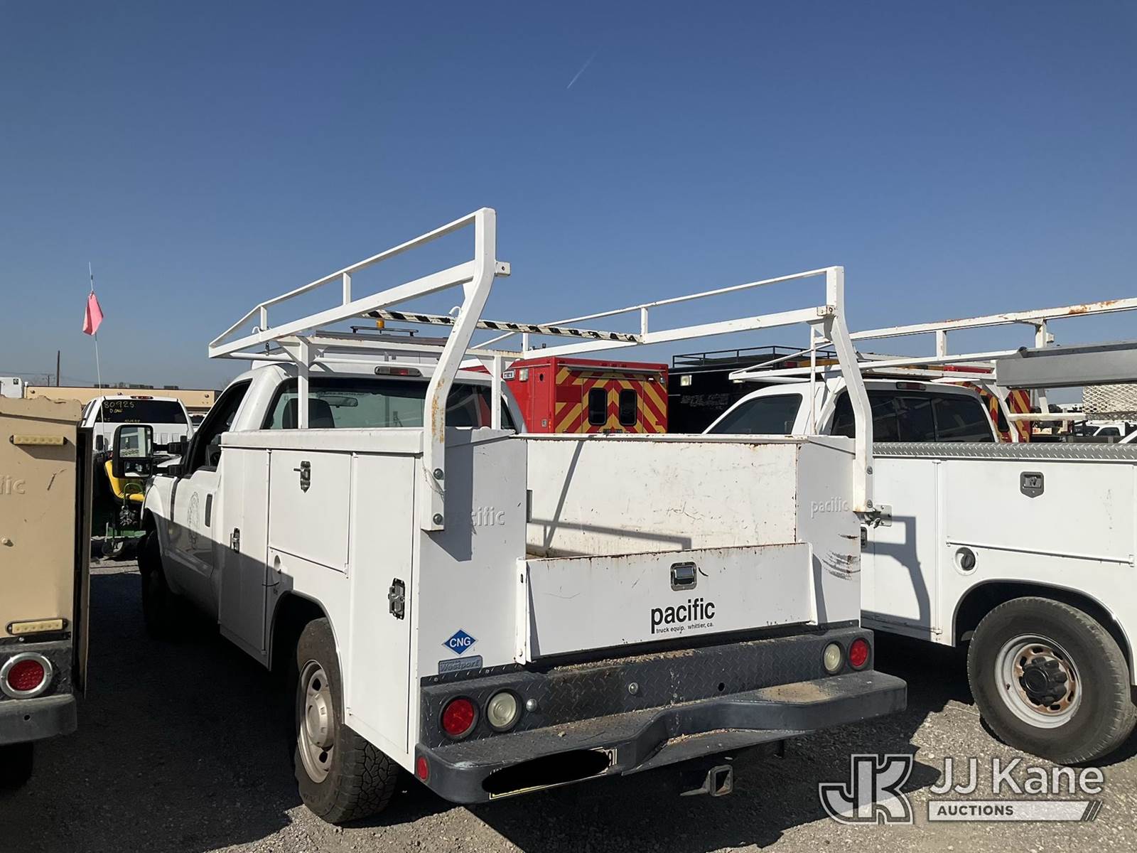 2015 Ford F-250 SD Service Truck, s/n 1FDBF2A63FEC90330, 6.2L V8 OHV 16V RWD, GAS, 6-Speed Automatic, A/C, with Tow Package, Ladder Rack , (26,993 miles) (Not Running, Condition Unknown) Cng Tank Exp Dates 06/2034) (Bidding Restricted to Licensed Vehicle Dealers Only), This is a Titled Item NOTE: This unit is being sold AS IS/WHERE IS via Timed Auction and is located in Jurupa Valley, CA. Inspection & preview days for this unit are the 2 business days prior to the first day of items closing for this auction, item is located at 4510 Muth Way Jurupa Valley, CA 92509 and hours of operations are 8a-4p. For pre-sale questions, please contact please contact Office Staff @ (310) 353-7140. Dealer License Number 45696. (Buyer is responsible for removal. Assistance by consignor or JJ Kane Auctions is not assured.)