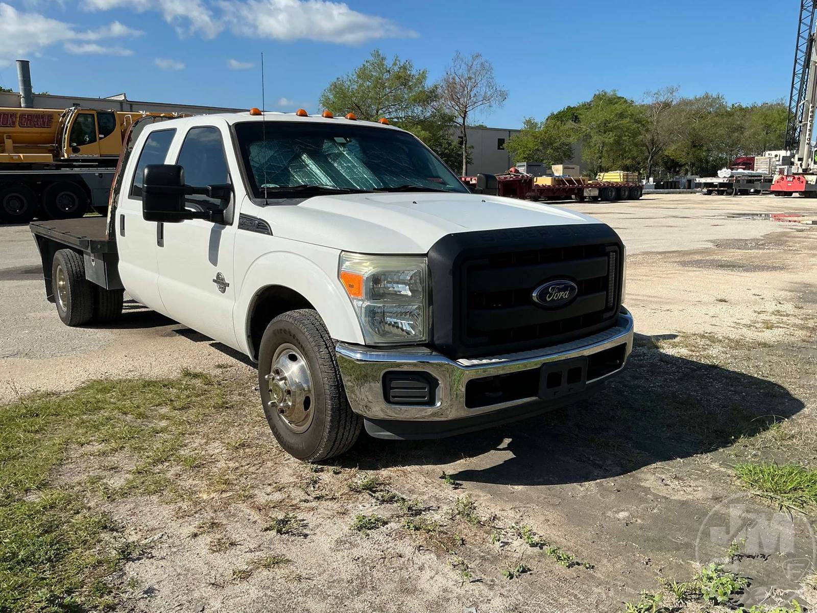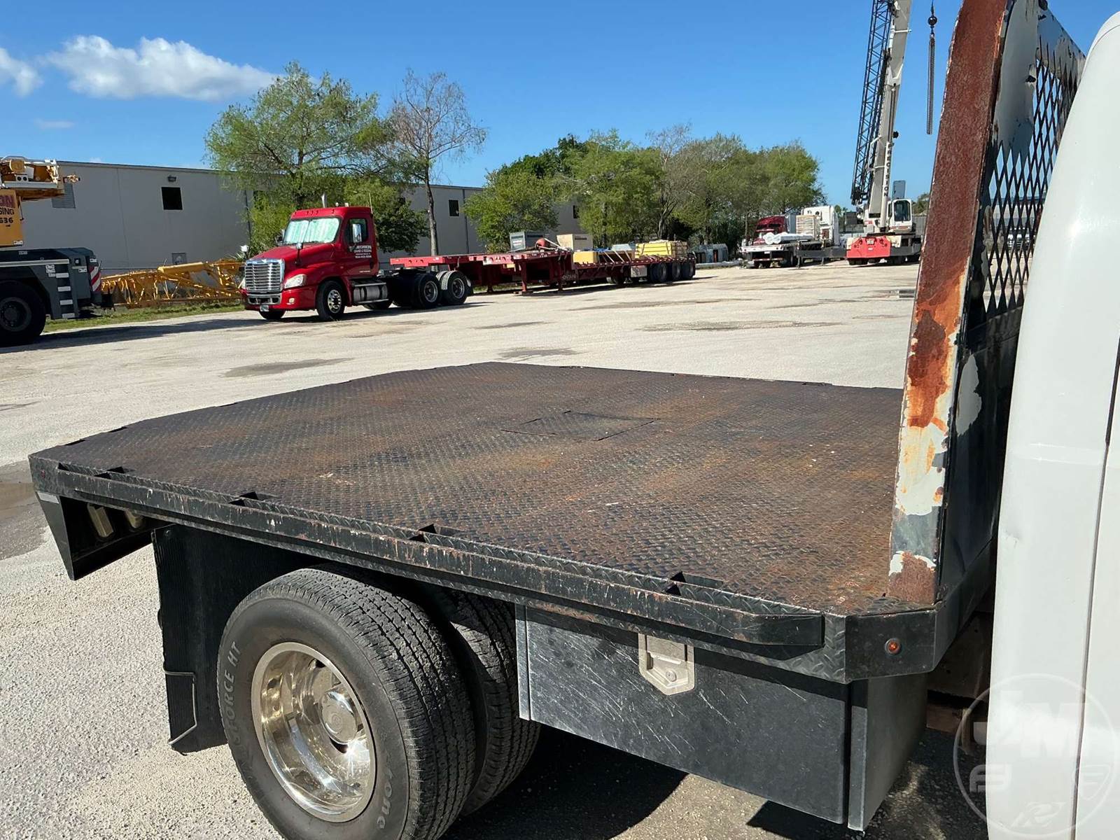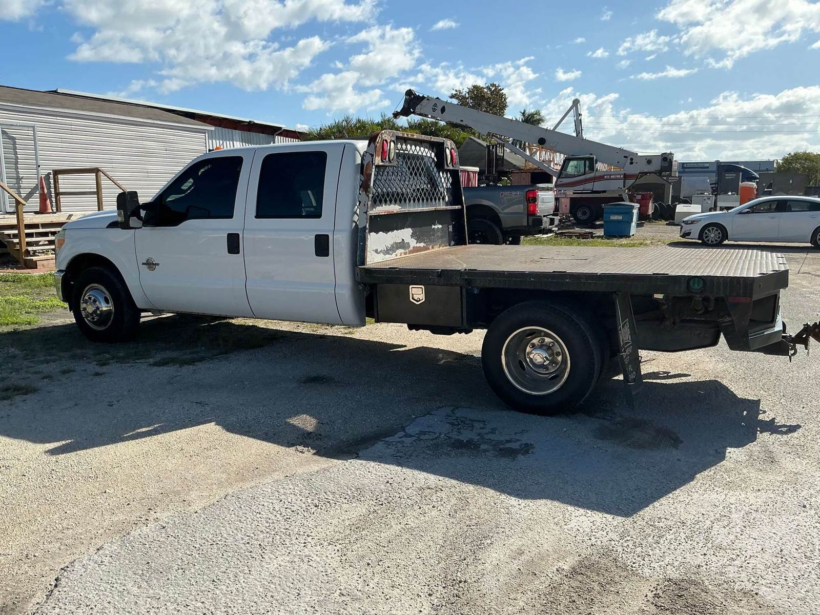 SINGLE AXLE REGULAR CAB FLATBED TRUCK, 12', STEEL BED, 6.7L POWER STROKE, AUTOMATIC, SPRING SUSPENSION, HEADACHE RACK, CRUISE CONTROL, 165...