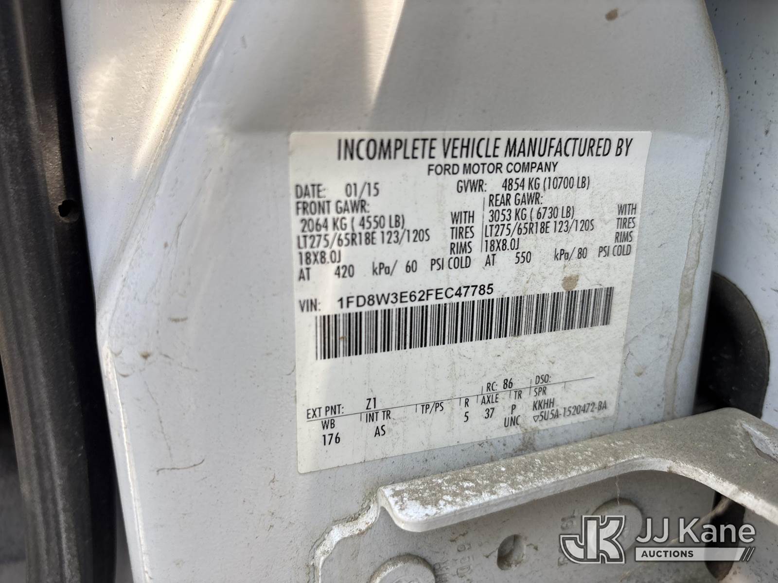 2015 Ford F-350 SD Crew-Cab Service Truck, s/n 1FD8W3E62FEC47785, 6.2L V8 OHV 16V RWD, Gas, 6-Speed Automatic, A/C, (83,091 miles) (Not Running, Does Not Crank, Conditions Unknown) (Bidding Restricted to Licensed Vehicle Dealers Only), May be subject to ARB Regulations This is a Titled Item NOTE: This unit is being sold AS IS/WHERE IS via Timed Auction and is located in Dixon, CA. Inspection & preview days for this unit are the 2 business days prior to the first day of items closing for this auction, item is located at 8668 Sparling Ln Dixon, CA 95620 and hours of operations are 8a-4p. For pre-sale questions, please contact JJ Kane Staff at (707) 678-8060 (dixon@jjkane.com). Dealer License Number 45696. (Buyer is responsible for removal. Assistance by consignor or JJ Kane Auctions is not assured.)