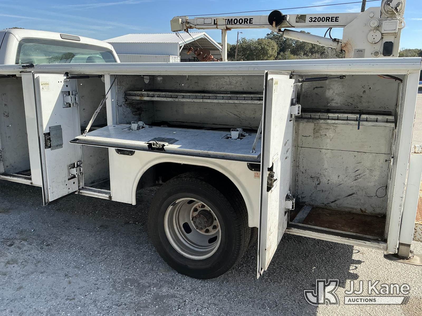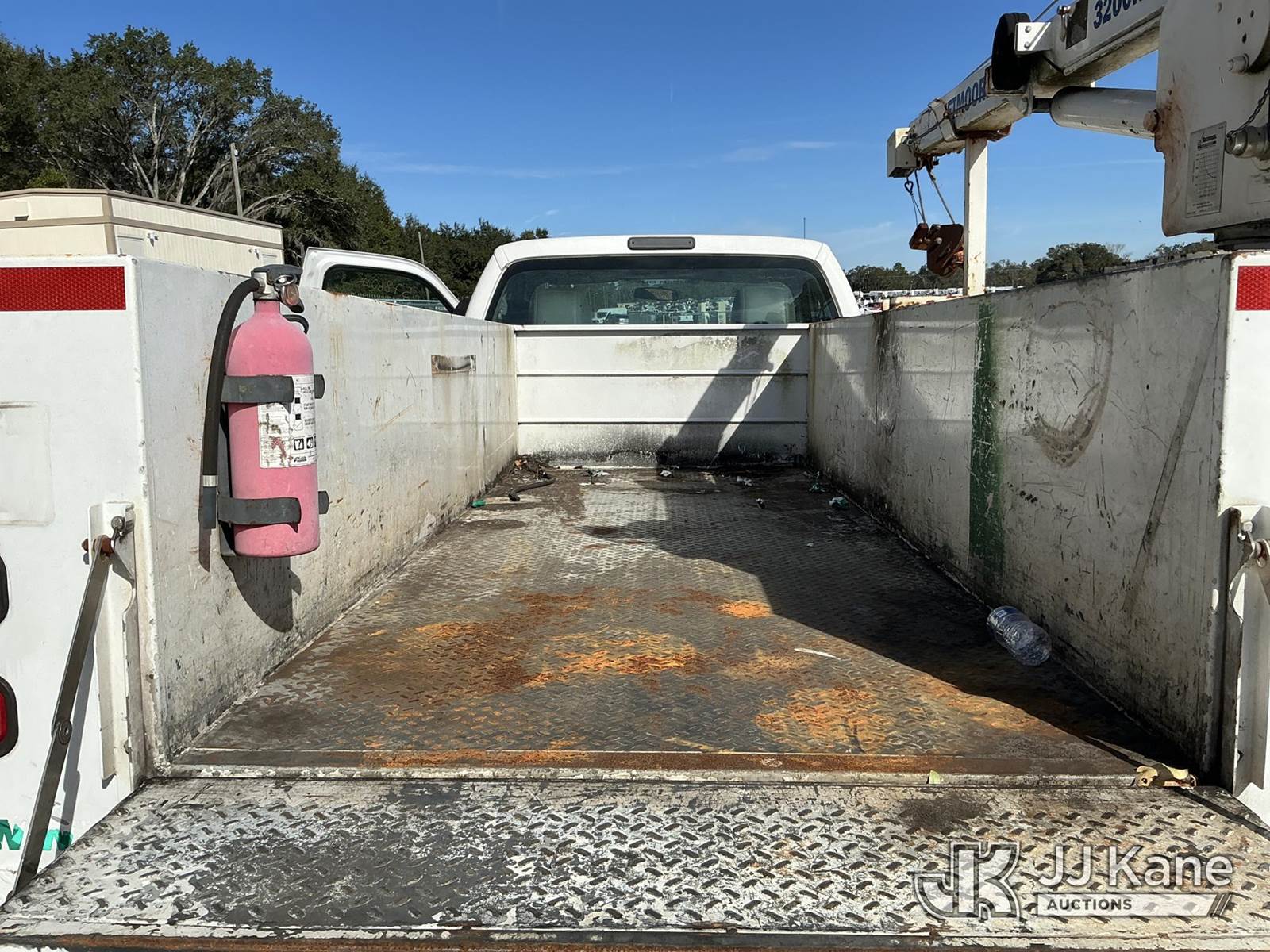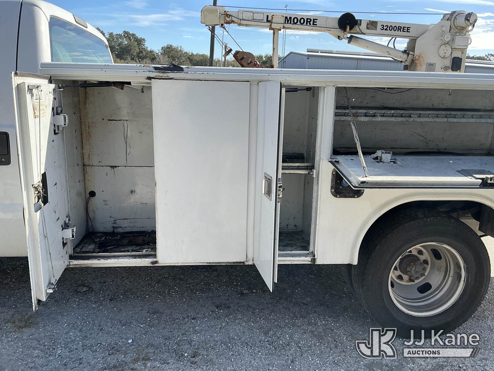 2015 Ford F-350 SD Service Truck, 6.7L V8 OHV 16V DIESEL RWD, Auto, A/C, with LiftMoore 3200REE material crane, (365,342 miles) (Runs, Moves, Upper Operates) (Check Engine Light On, Jump To Start, Needs Battery, Start In Neutral, Suspension Issues, Cracked Windshield, Paint Damage) (Remote In Office)(FL Residents Purchasing Titled Items – tax, title & registration fees will be collected at the maximum rate of $400.00 under 25,999 and $800.00 for Over 26,000 and $250.00 trailers – Proof of insurance is mandatory; Out of State Residents Purchasing Title Items – tax will be collected based upon your state rate.) This is a Titled Item NOTE: This unit is being sold AS IS/WHERE IS via Timed Auction and is located in Thonotosassa, FL. Inspection & preview days for this unit are the 2 business days prior to the first day of items closing for this auction, item is located at 11720 N US 301 Thonotosassa, Fl 33592 and hours of operations are 8a-4p. For pre-sale questions, please contact Office Staff @ (813) 986-2485. (Buyer is responsible for removal. Assistance by consignor or JJ Kane Auctions is not assured.)