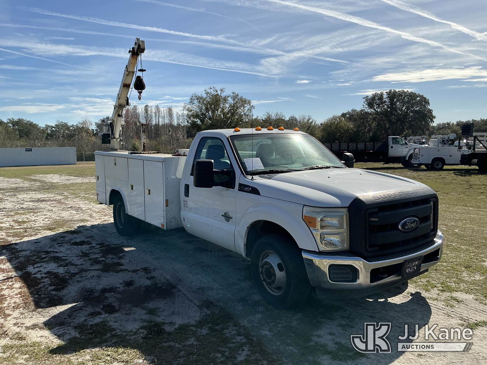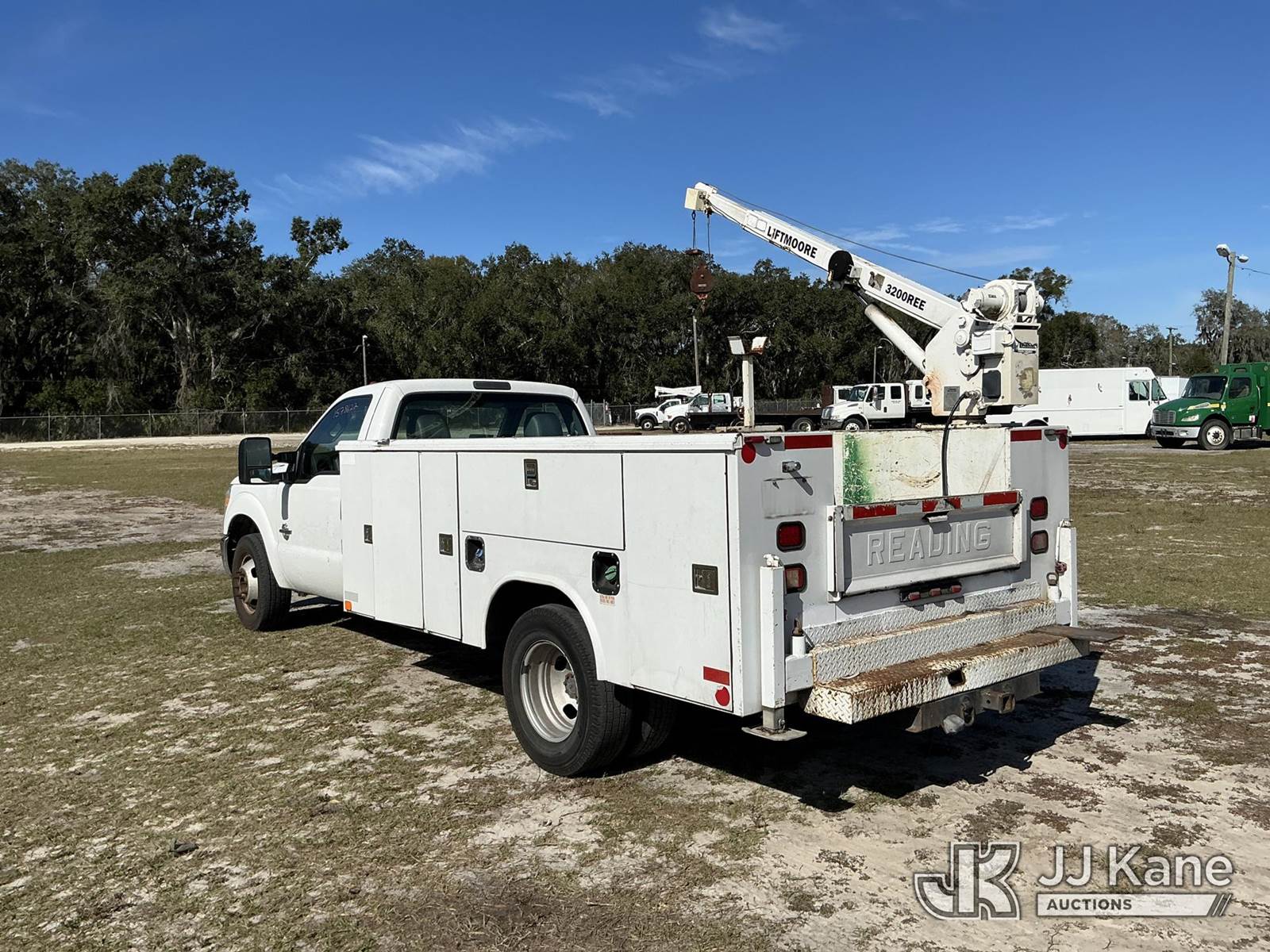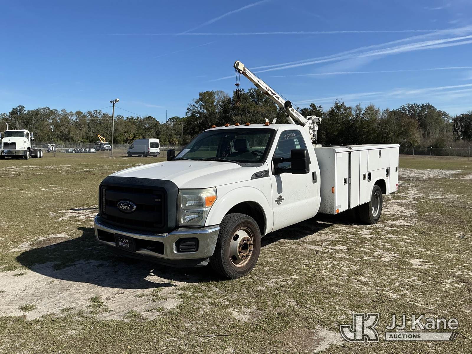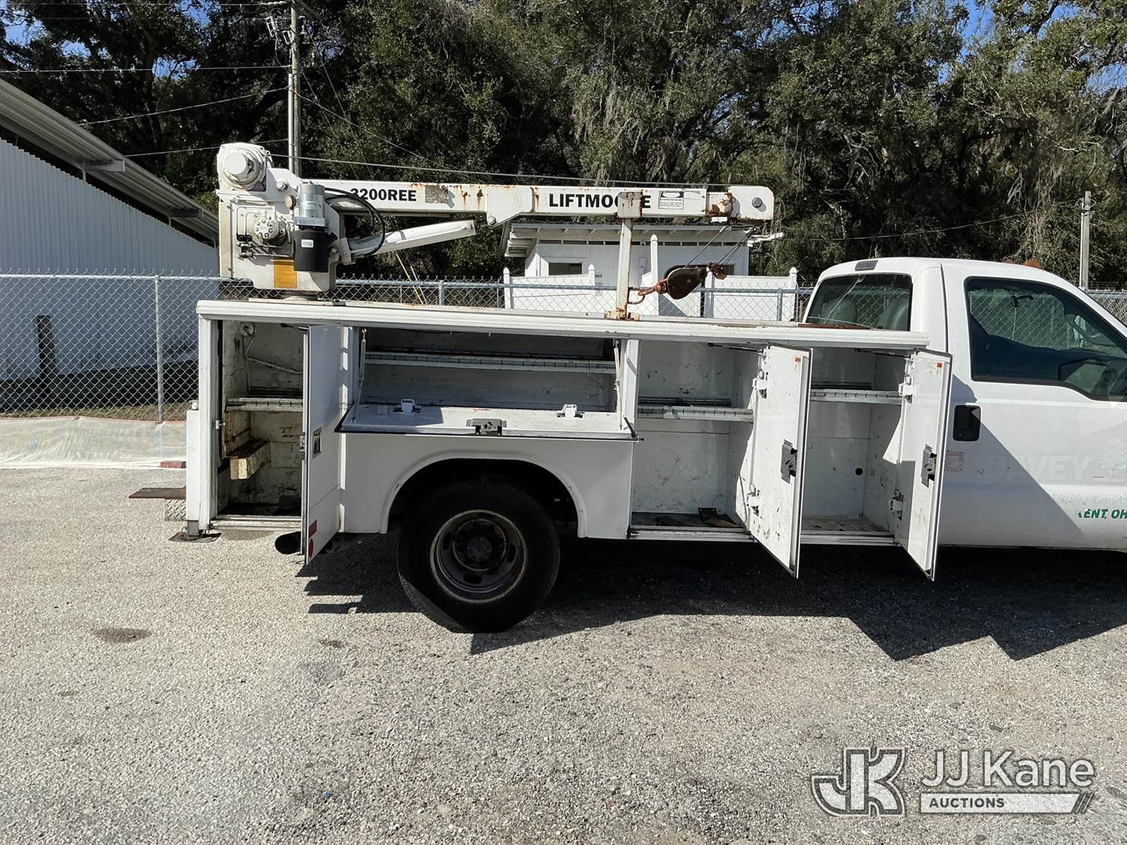2015 Ford F-350 SD Service Truck, 6.7L V8 OHV 16V DIESEL RWD, Auto, A/C, with LiftMoore 3200REE material crane, (365,342 miles) (Runs, Moves, Upper Operates) (Check Engine Light On, Jump To Start, Needs Battery, Start In Neutral, Suspension Issues, Cracked Windshield, Paint Damage) (Remote In Office)(FL Residents Purchasing Titled Items – tax, title & registration fees will be collected at the maximum rate of $400.00 under 25,999 and $800.00 for Over 26,000 and $250.00 trailers – Proof of insurance is mandatory; Out of State Residents Purchasing Title Items – tax will be collected based upon your state rate.) This is a Titled Item NOTE: This unit is being sold AS IS/WHERE IS via Timed Auction and is located in Thonotosassa, FL. Inspection & preview days for this unit are the 2 business days prior to the first day of items closing for this auction, item is located at 11720 N US 301 Thonotosassa, Fl 33592 and hours of operations are 8a-4p. For pre-sale questions, please contact Office Staff @ (813) 986-2485. (Buyer is responsible for removal. Assistance by consignor or JJ Kane Auctions is not assured.)