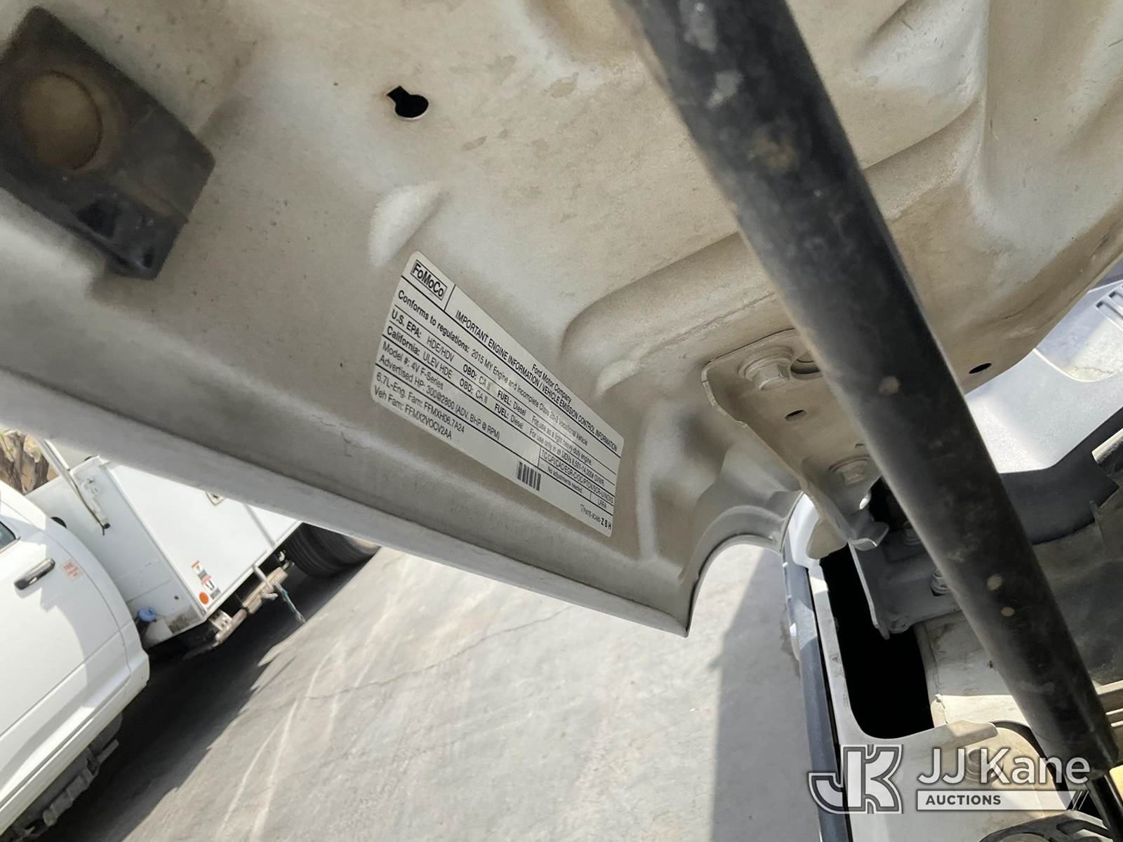 2015 Ford F-350 SD Service Truck, s/n 1FD8X3ET7FEC56193, 6.7L V8 OHV 16V RWD, DIESEL, 6-Speed Automatic, A/C, with Tow Package , (224,745 miles) (Runs Rough, No Acceleration, Bad Engine & Moves) (Bidding Restricted to Licensed Vehicle Dealers and Out of State Buyers Only), May be subject to ARB Regulations This is a Titled Item NOTE: This unit is being sold AS IS/WHERE IS via Timed Auction and is located in Jurupa Valley, CA. Inspection & preview days for this unit are the 2 business days prior to the first day of items closing for this auction, item is located at 4510 Muth Way Jurupa Valley, CA 92509 and hours of operations are 8a-4p. For pre-sale questions, please contact please contact Office Staff @ (310) 353-7140. Dealer License Number 45696. (Buyer is responsible for removal. Assistance by consignor or JJ Kane Auctions is not assured.)