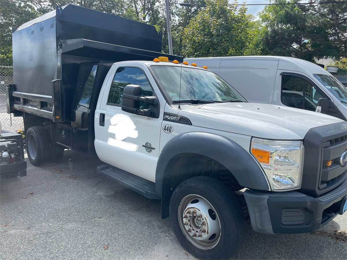 2015 Ford F450 dump truck. Truck does not run, has blown motor. Truck DOES NOT include chip box insert shown in photo's. Chip box insert has been removed.