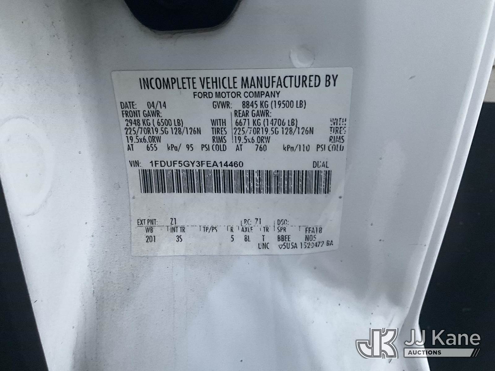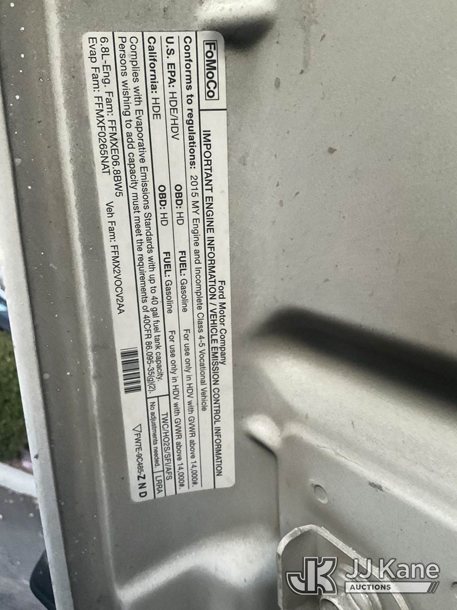 2015 Ford F-550 Regular Cab DRW 2WD Van Body Truck, s/n 1FDUF5GY3FEA14460, 6.8L V10 SOHC 30V Auto, RWD, GAS, with Lift Gate, Measurements L=17ft +3ft H= 8ft 3" W= 8ft, (101,353 miles) (Runs & Moves) This is a Titled Item NOTE: This unit is being sold AS IS/WHERE IS via Timed Auction and is located in Jurupa Valley, CA. Inspection & preview days for this unit are the 2 business days prior to the first day of items closing for this auction, item is located at 4510 Muth Way Jurupa Valley, CA 92509 and hours of operations are 8a-4p. For pre-sale questions, please contact please contact Office Staff @ (310) 353-7140. Dealer License Number 45696. (Buyer is responsible for removal. Assistance by consignor or JJ Kane Auctioneers is not assured.)