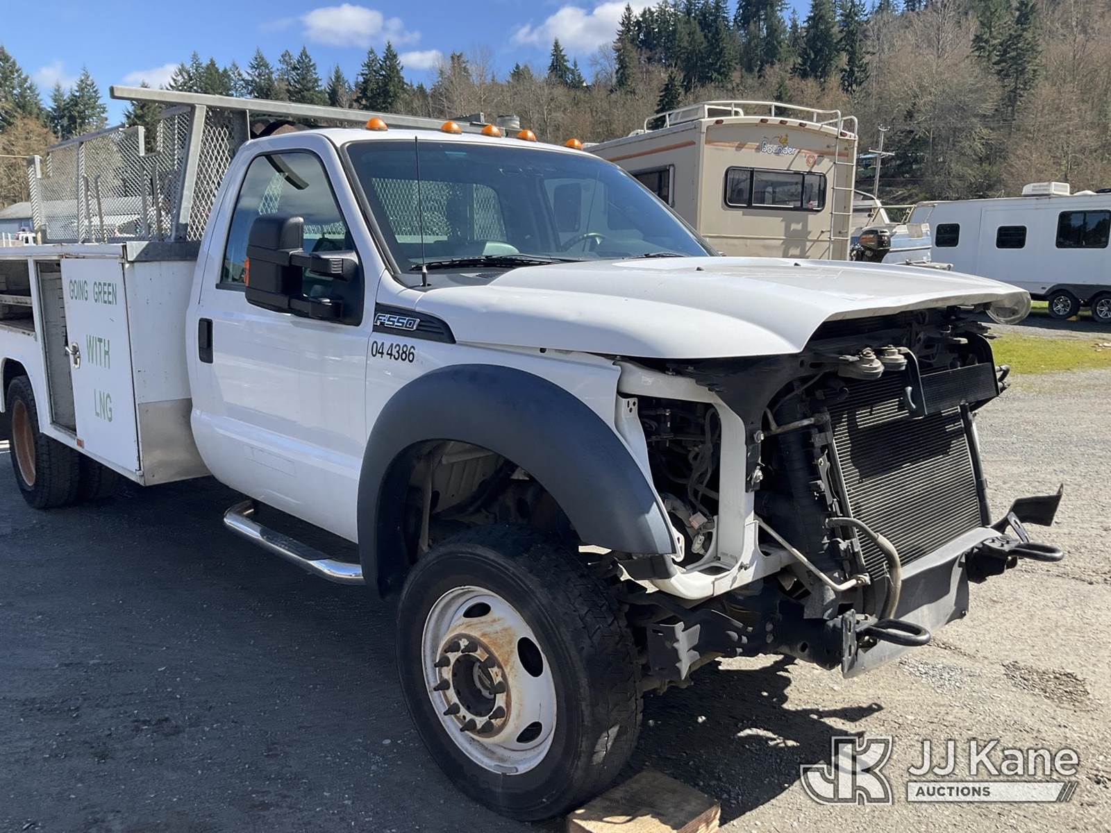 2015 Ford F-550 Service Truck, 10-cyl, 4WD, LNG, Auto, A/C, True Mileage Unknown (Not Running, Condition Unknown, No Power, Missing LNG Tank, Missing Other Parts, No Dash) (Seller States: Idle Issues/ Stalls out) This is a Titled Item NOTE: This unit is being sold AS IS/WHERE IS via Timed Auction and is located in Eatonville, WA. Inspection & preview days for this unit are by appointment only; please contact us at contact@jjkane.com or 84-Go-JJKane for more details. (Buyer is responsible for removal. Assistance by consignor or JJ Kane Auctions is not assured.)