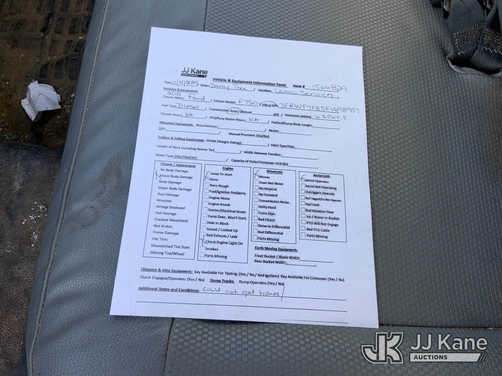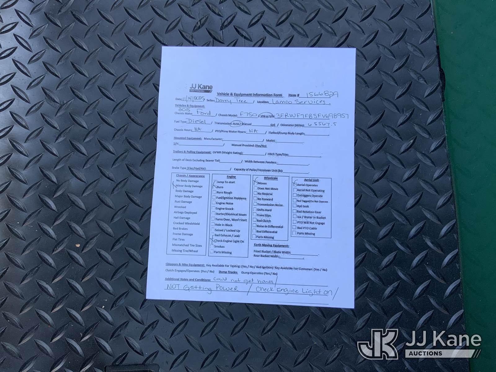 2015 Ford F-750 Chipper Dump Truck, 6.7L L6 diesel, Auto, 4X2, (65,567 miles) (Runs & Moves, Dump Operates, Check Engine Light On) (Hours Unknown) This is a Titled Item NOTE: This unit is being sold AS IS/WHERE IS via Timed Auction and is located in Graysville, AL. Inspection & preview days for this unit are by appointment only; please contact us at contact@jjkane.com or 84-Go-JJKane for more details. Alabama Auctioneer Michael Whitebread - License # 5592 (Buyer is responsible for removal. Assistance by consignor or JJ Kane Auctioneers is not assured.)