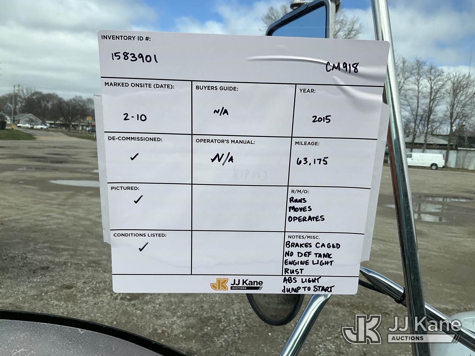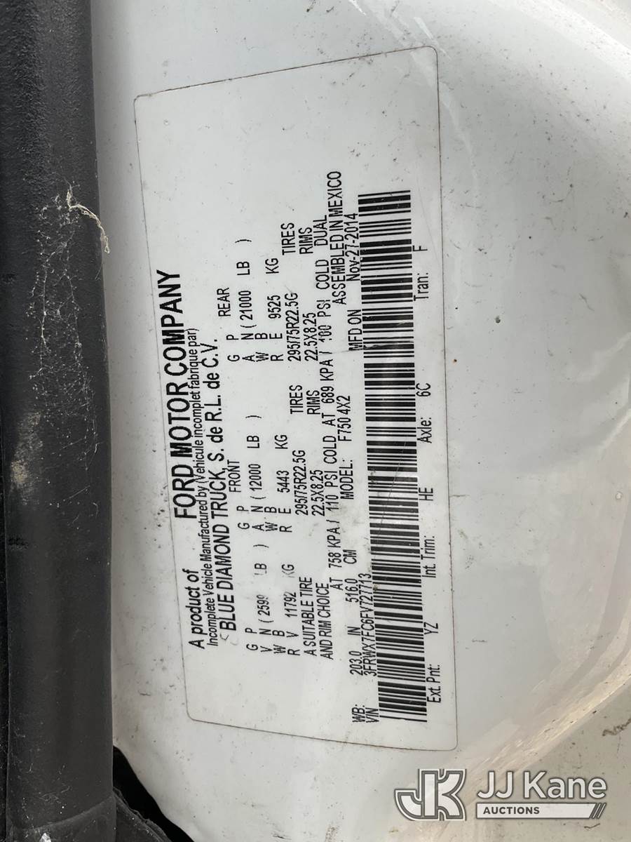 2015 Ford F-750 Extended-Cab Chipper Dump Truck, Cummins 6.7L 4X2, diesel, Auto, A/C, (63,175 miles) (Runs, Moves, Dump Operates) (Brakes Are Caged, DEF Tank Missing, Rust, Engine Light, ABS Light, Jump to Start) (BUYER OR TRANSPORTER RESPONSIBLE FOR LOADING WITHOUT ASSISTANCE FROM JJ KANE PERSONNEL) This is a Titled Item NOTE: This unit is being sold AS IS/WHERE IS via Timed Auction and is located in Charlotte, MI. Inspection & preview days for this unit are the 2 business days prior to the first day of items closing for this auction, item is located at 750 Island Hwy Charlotte, MI 48813 and hours of operations are 8a-4p. For pre-sale questions, please contact Corey Cook at (517) 983-0796 or corey.cook@jjkane.com (Buyer is responsible for removal. Assistance by consignor or JJ Kane Auctions is not assured.)