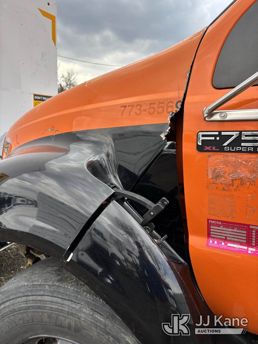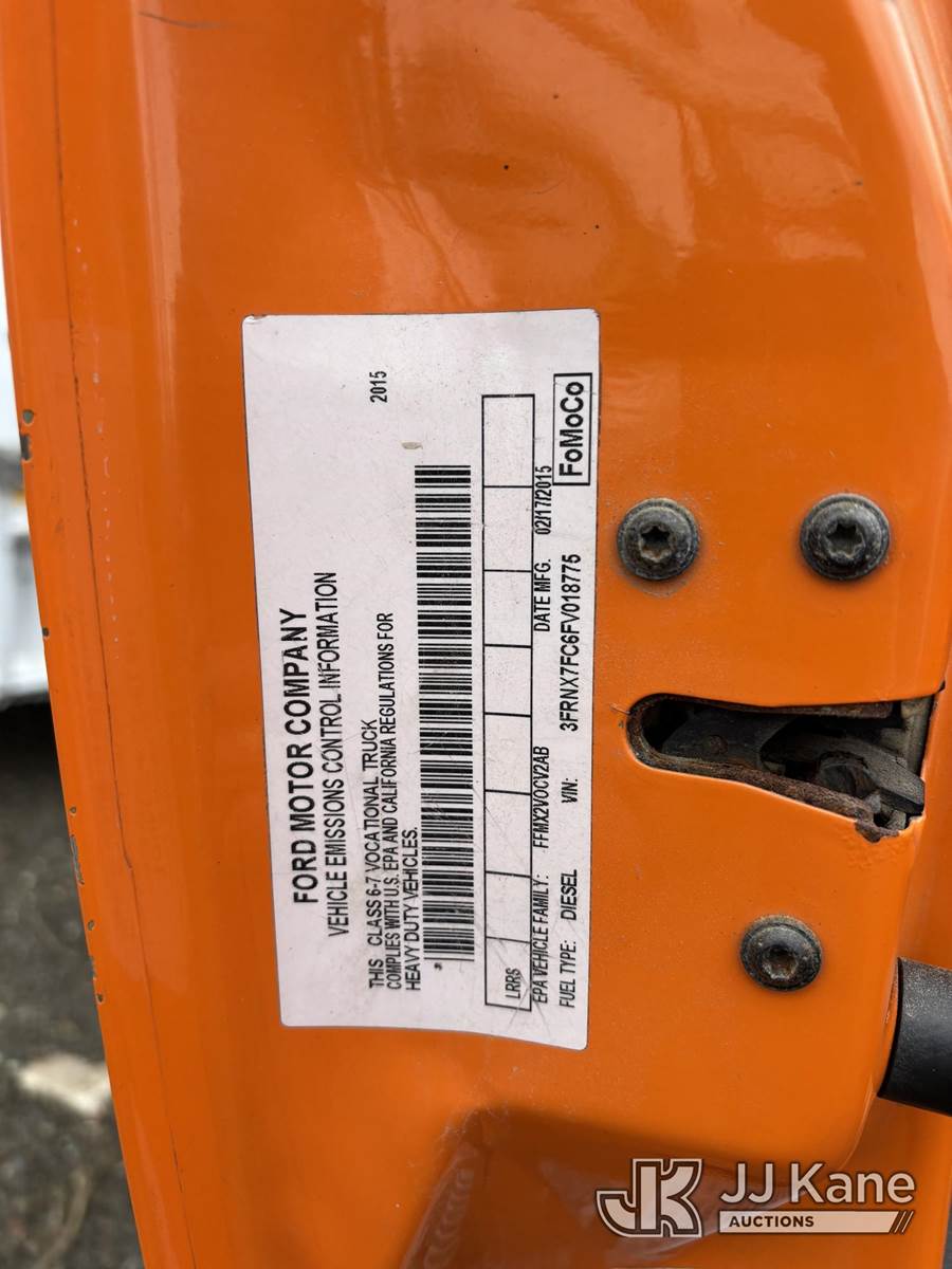 2015 Ford F-750 Extended-Cab Chipper Dump Truck, s/n 3FRNX7FC6FV018775, 6.7L L6 Diesel, 4X2, manual, True Mileage Unknown (Not Running, Condition Unknown, Engine and Transmission Removed, Engine and Transmission Located in Dump, Broken Driver Back Window, Rust and Body Damage, Must Tow) This is a Titled Item NOTE: This unit is being sold AS IS/WHERE IS via Timed Auction and is located in Alpha, NJ. For pre-sale questions and pickups, please contact Pete Rhodes at peter.rhodes@jjkane.com. Pickups can be conducted Monday through Friday 9:30am to 3:00pm. (Buyer is responsible for removal. Assistance by consignor or JJ Kane Auctions is not assured.)