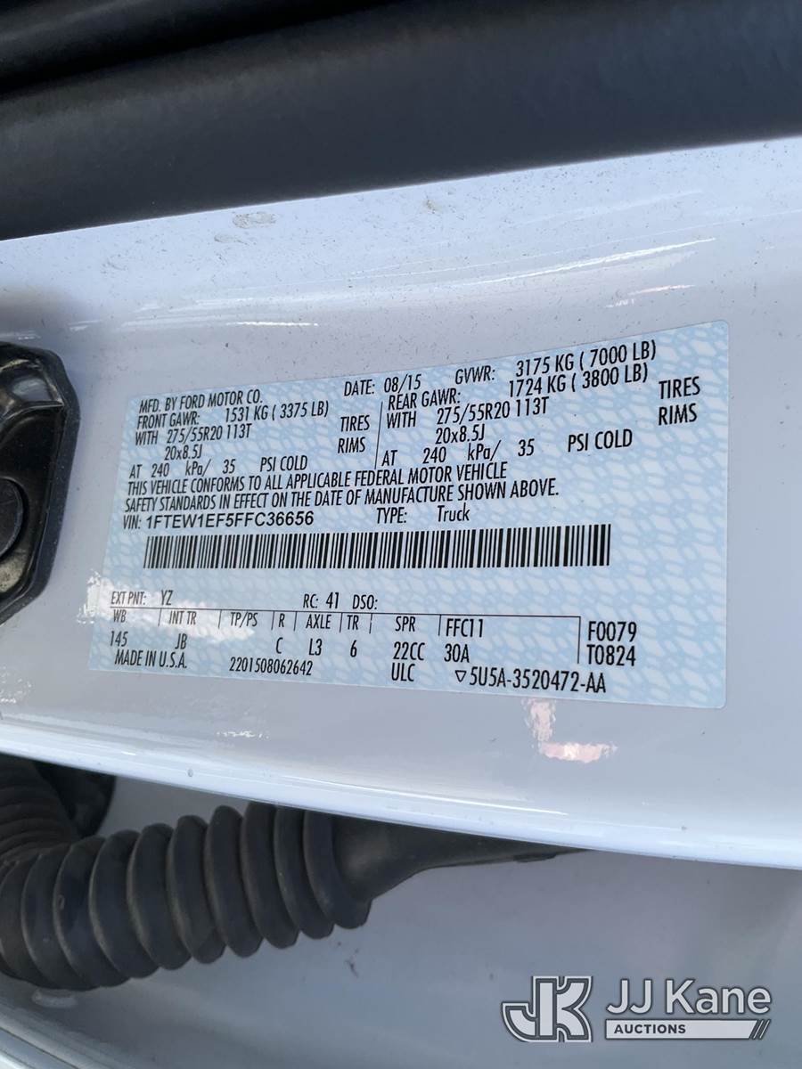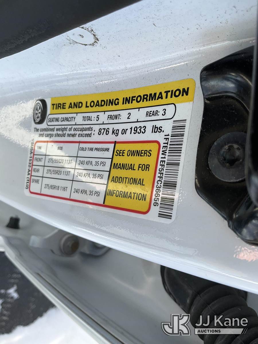2015 Ford F150 4x4 Crew-Cab Pickup Truck, 5.0L V8 Auto, Gas, A/C, with cap, (197,482 miles) (Runs & Moves) This is a Titled Item NOTE: This unit is being sold AS IS/WHERE IS via Timed Auction and is located in De Pere, WI. Contact Phil for inspection and if successful to schedule load-out. (262) 308-2554 or phil@jjkane.com (Buyer is responsible for removal. Assistance by consignor or JJ Kane Auctions is not assured.)