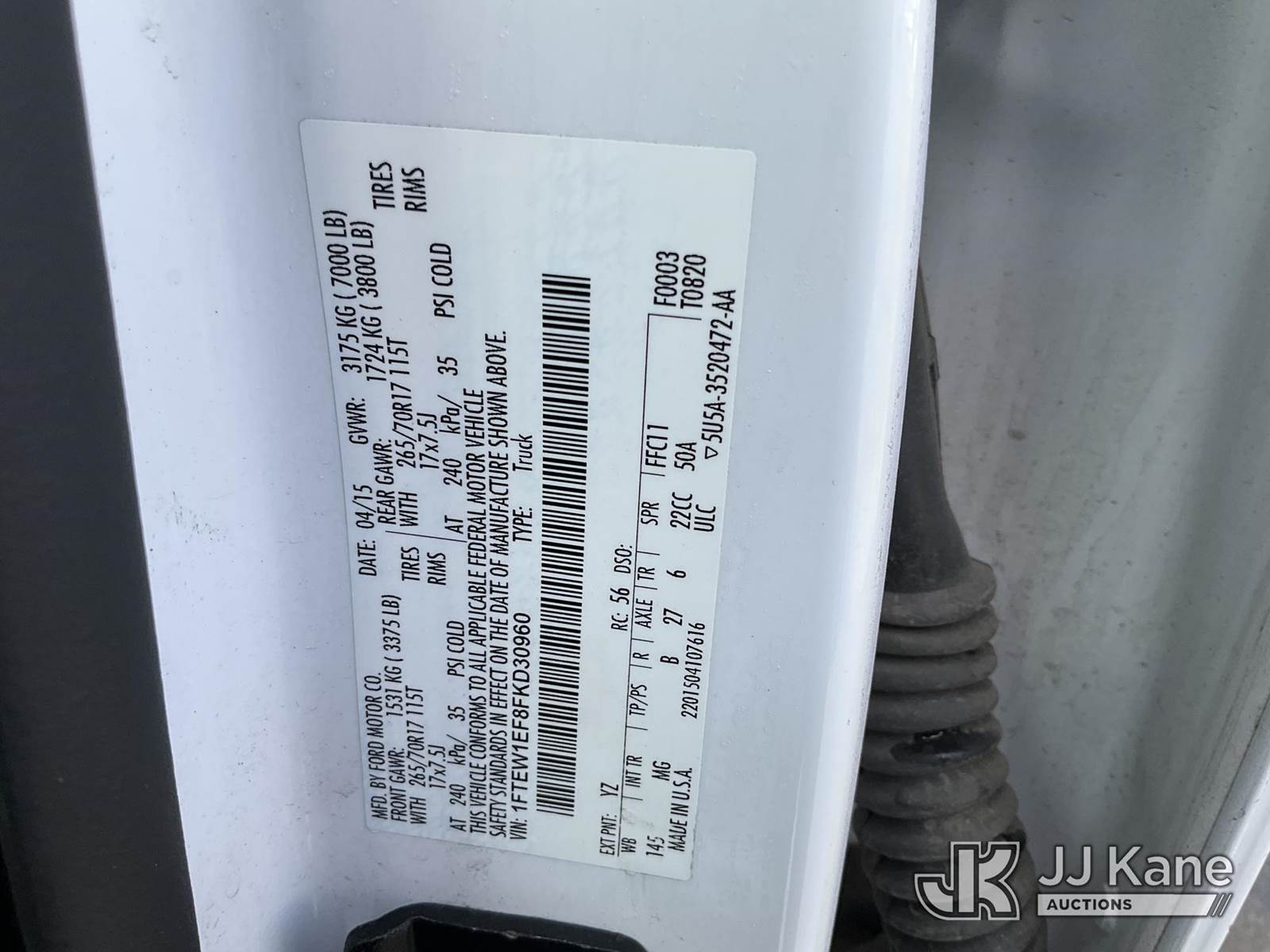 2015 Ford F150 4x4 Crew-Cab Pickup Truck, 8-cyl gas, Auto, A/C, with bed cover, (104,280 miles) (Runs & Moves) (Check Engine Light On ) This is a Titled Item NOTE: This unit is being sold AS IS/WHERE IS via Timed Auction and is located in Salt Lake City, UT. Inspection & preview days for this unit are the 2 business days prior to the first day of items closing for this auction, item is located at 2353 N Redwood Rd Salt Lake City, UT 84116 and hours of operations are 8a-4p. Titles executed exactly as bidder registered. Ensure your name and/or business name and address in JJ Kane and/or ProxiBid is correct before bidding. For pre-sale questions, please contact Office Staff @ (801) 519-0123. (Buyer is responsible for removal. Assistance by consignor or JJ Kane Auctions is not assured.)