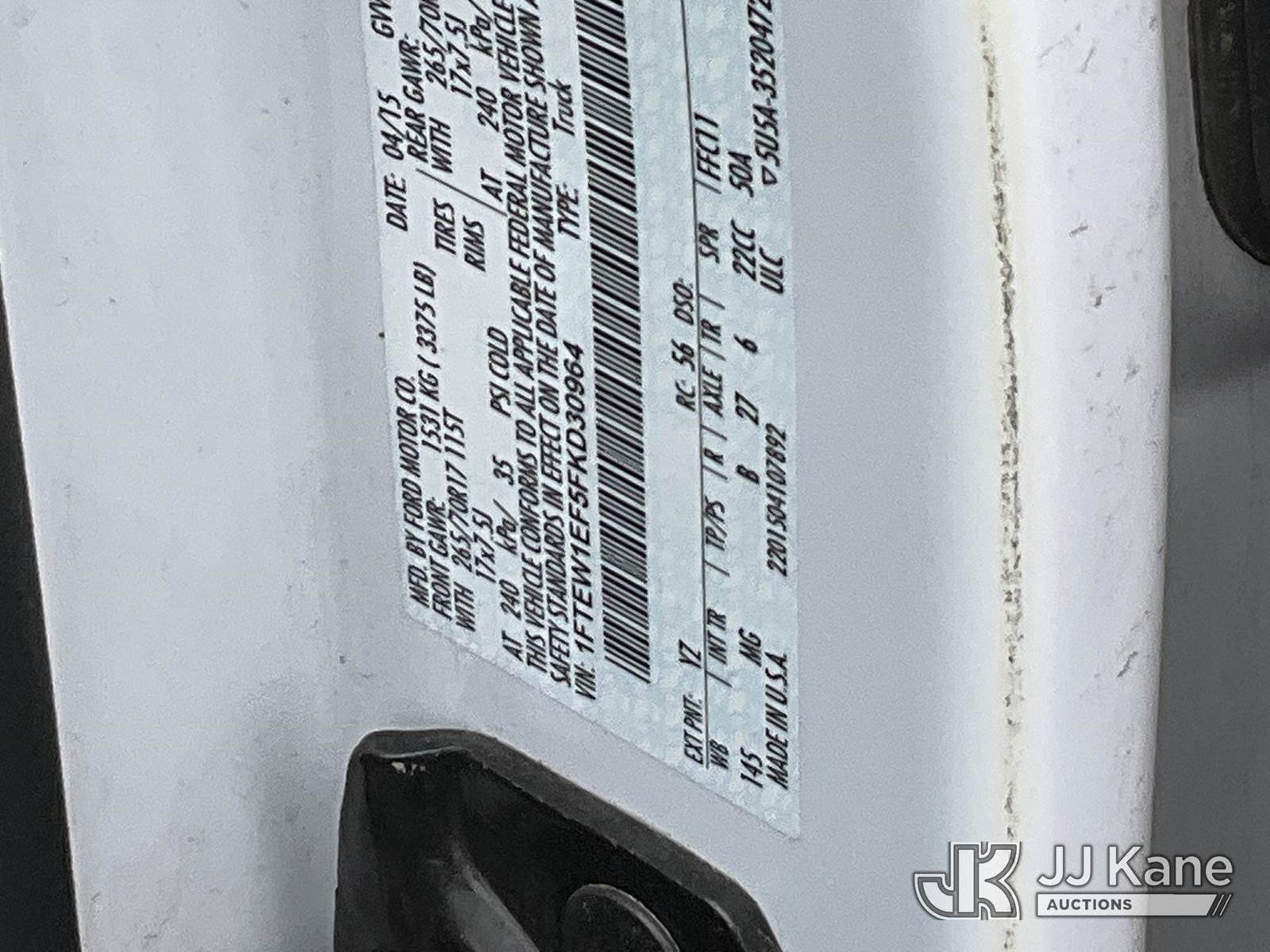 2015 Ford F150 4x4 Crew-Cab Pickup Truck, 8-cyl gas, 4wd, Auto, A/C, (101,331 miles) (Runs & Moves) This is a Titled Item NOTE: This unit is being sold AS IS/WHERE IS via Timed Auction and is located in Salt Lake City, UT. Inspection & preview days for this unit are the 2 business days prior to the first day of items closing for this auction, item is located at 2353 N Redwood Rd Salt Lake City, UT 84116 and hours of operations are 8a-4p. Titles executed exactly as bidder registered. Ensure your name and/or business name and address in JJ Kane and/or ProxiBid is correct before bidding. For pre-sale questions, please contact Office Staff @ (801) 519-0123. (Buyer is responsible for removal. Assistance by consignor or JJ Kane Auctions is not assured.)
