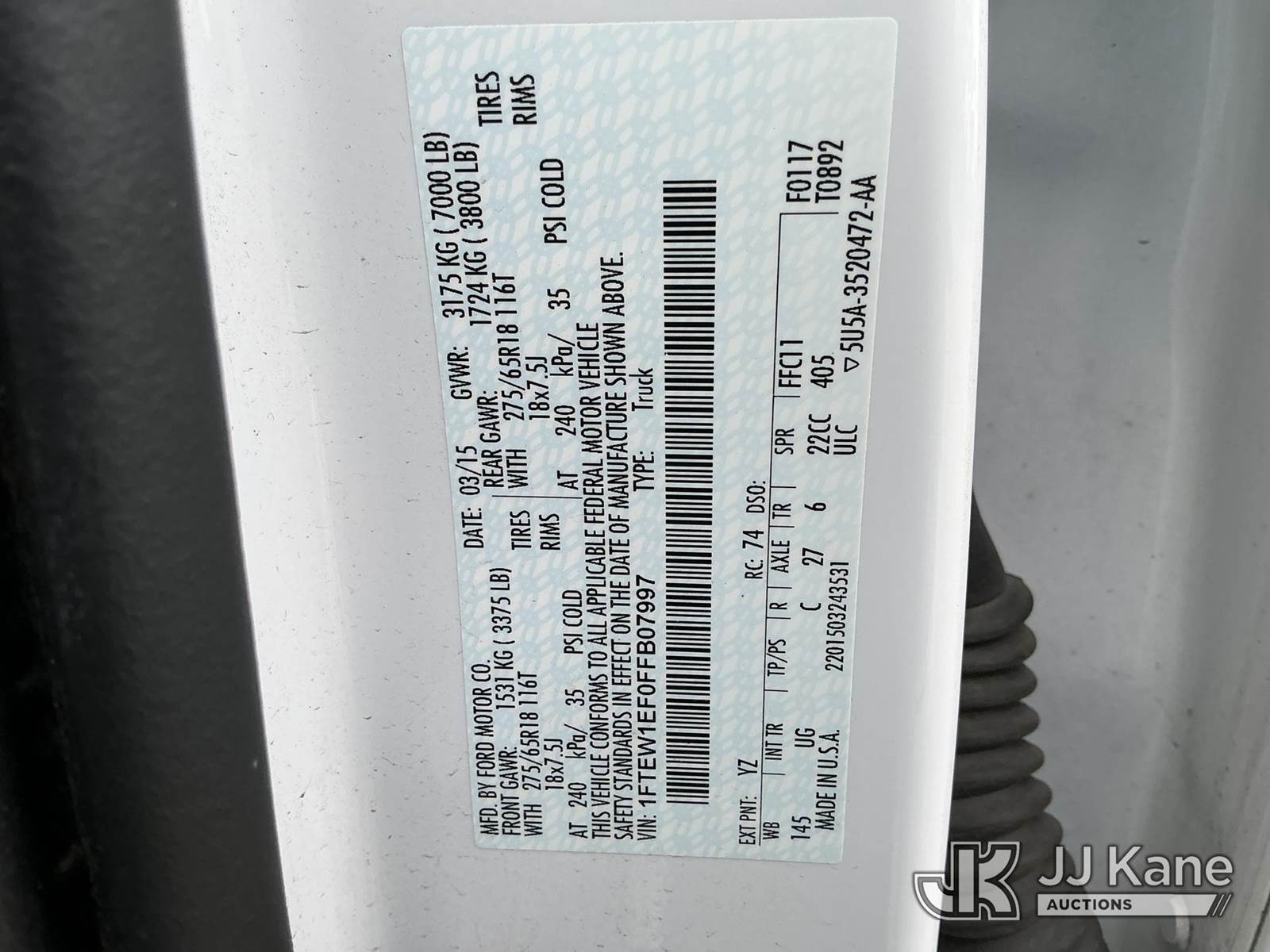 2015 Ford F150 4x4 Crew-Cab Pickup Truck, 5.0L V8 gas, 6-Speed Automatic, A/C, (112,353 miles) (Runs & Moves) This is a Titled Item NOTE: This unit is being sold AS IS/WHERE IS via Timed Auction and is located in Portland, OR. Inspection & preview days for this unit are the 2 business days prior to the first day of items closing for this auction, item is located at 13817 NE Sandy Blvd Portland, OR 97230 and hours of operations are 8a-4p. For pre-sale questions, please contact Tony Tully @ (503)-307-1348. Dealer License Number DL1391. (Buyer is responsible for removal. Assistance by consignor or JJ Kane Auctions is not assured.)