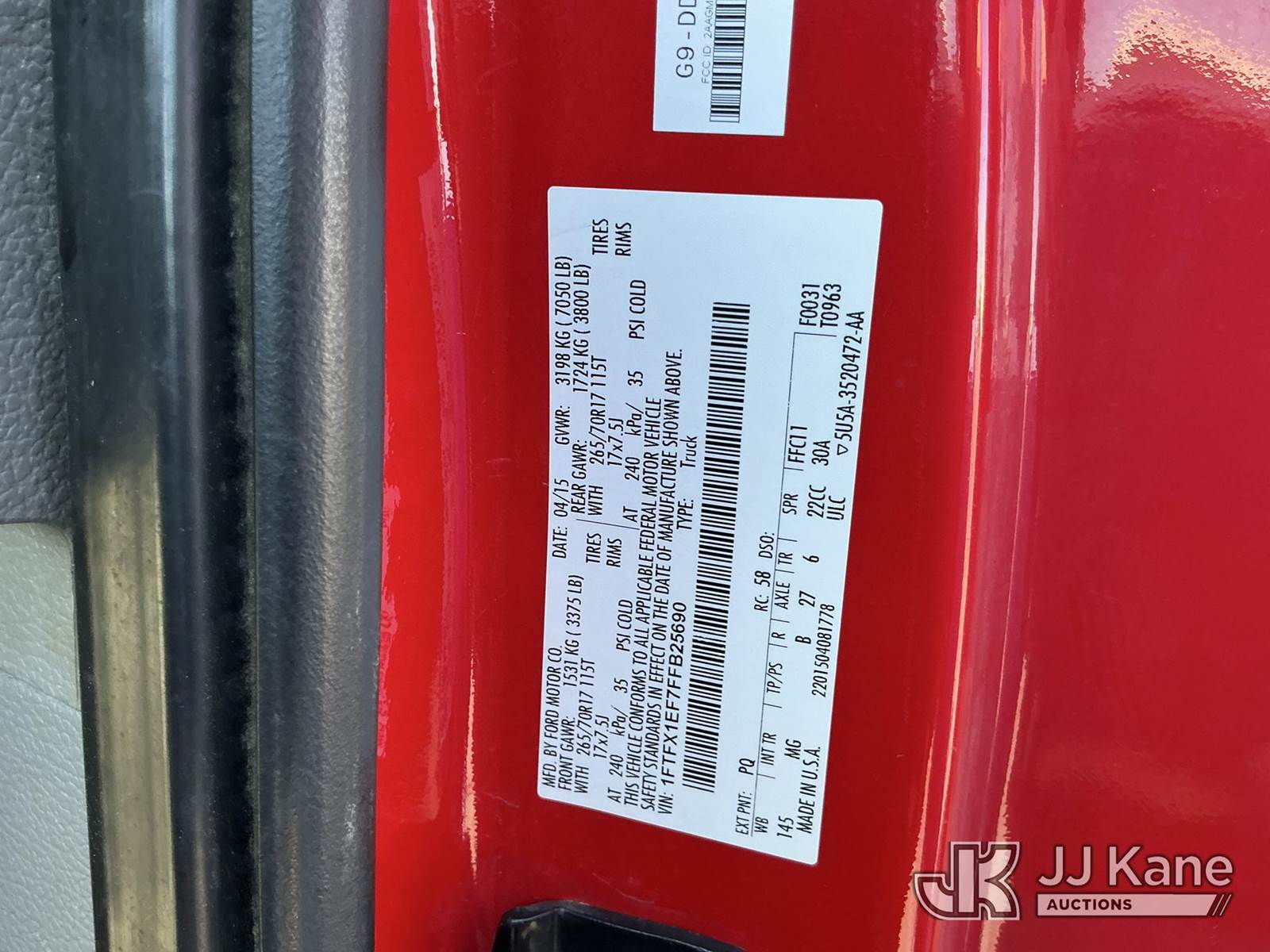 2015 Ford F150 4x4 Extended-Cab Pickup Truck, 8-cyl gas, Auto, A/C, with bed cover, (221,536 miles) Engine Idle Hours - 3359 (Runs, Moves) (Reads 7,925 hours) This is a Titled Item NOTE: This unit is being sold AS IS/WHERE IS via Timed Auction and is located in Maple Lake, MN. For specific technical information or questions about this item, contact Ben Boucher at (612) 616-2798. For load-out and pick information, reference the hauler sheet sent out after purchase. These items are used and may contain defects that are not immediately detectable. Text descriptions and photos given are meant to be used as a guide only. The conditions are provided by the consignor. The Buyer is responsible for inspecting the item before bidding. Purchaser acknowledges ALL lots must be removed within 10 business days of the Auction, or a storage fee may be incurred. All information provided is believed to be correct but no warranty as such is either intended or implied. All items are sold AS IS - WHERE IS AND WITH ALL FAULTS AND DEFECTS THEREIN. (Buyer is responsible for removal. Assistance by consignor or JJ Kane Auctioneers is not assured.)