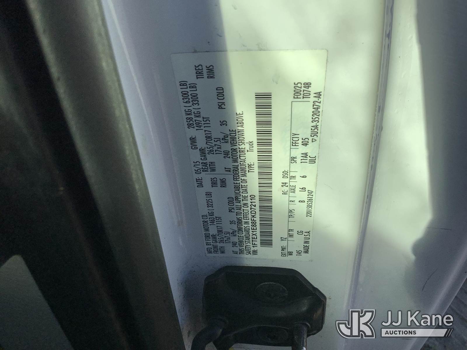 2015 Ford F150 4x4 Extended-Cab Pickup Truck, 6-cyl gas, Auto, A/C, (178,199 miles) (Runs & Moves) (Paint Damage) (AED Not Included) This is a Titled Item NOTE: This unit is being sold AS IS/WHERE IS via Timed Auction and is located in Thonotosassa, FL. Inspection & preview days for this unit are the 2 business days prior to the first day of items closing for this auction, item is located at 11720 N US 301 Thonotosassa, Fl 33592 and hours of operations are 8a-4p. For pre-sale questions, please contact Office Staff @ (813) 986-2485. (Buyer is responsible for removal. Assistance by consignor or JJ Kane Auctioneers is not assured.)