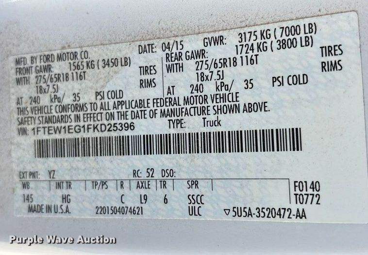 VIN: 1FTEW1EG1FKD25396