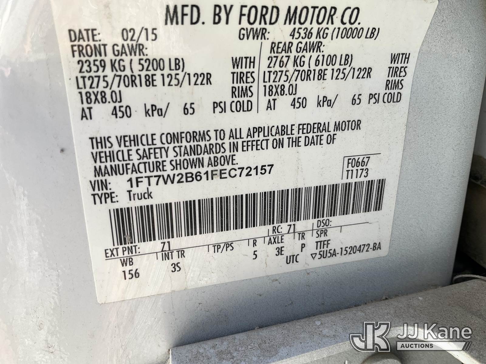 2015 Ford F250 4x4 Crew-Cab Pickup Truck, 6.2L V8 OHV 16V gas, 6-Speed Automatic, A/C, with front winch, bed cover & bed slide, (153,597 miles) (Runs & Moves) (Jump To Start, No Winch Remote, Center Console Removed) This is a Titled Item NOTE: This unit is being sold AS IS/WHERE IS via Timed Auction and is located in Las Vegas, NV. Inspection & preview days for this unit are the 2 business days prior to the first day of items closing for this auction, item is located at 14655 Grand Valley Pkwy Las Vegas, NV 89165 and hours of operations are 8a-4p. Titles executed exactly as bidder registered. Ensure your name and/or business name and address in JJ Kane and/or ProxiBid is correct before bidding. For pre-sale questions, please contact Office Staff @ (801) 519-0123 and provide sale date and lot number. Las Vegas Dealer License Number DLR000053086 / OHV000053094. (Buyer is responsible for removal. Assistance by consignor or JJ Kane Auctions is not assured.)