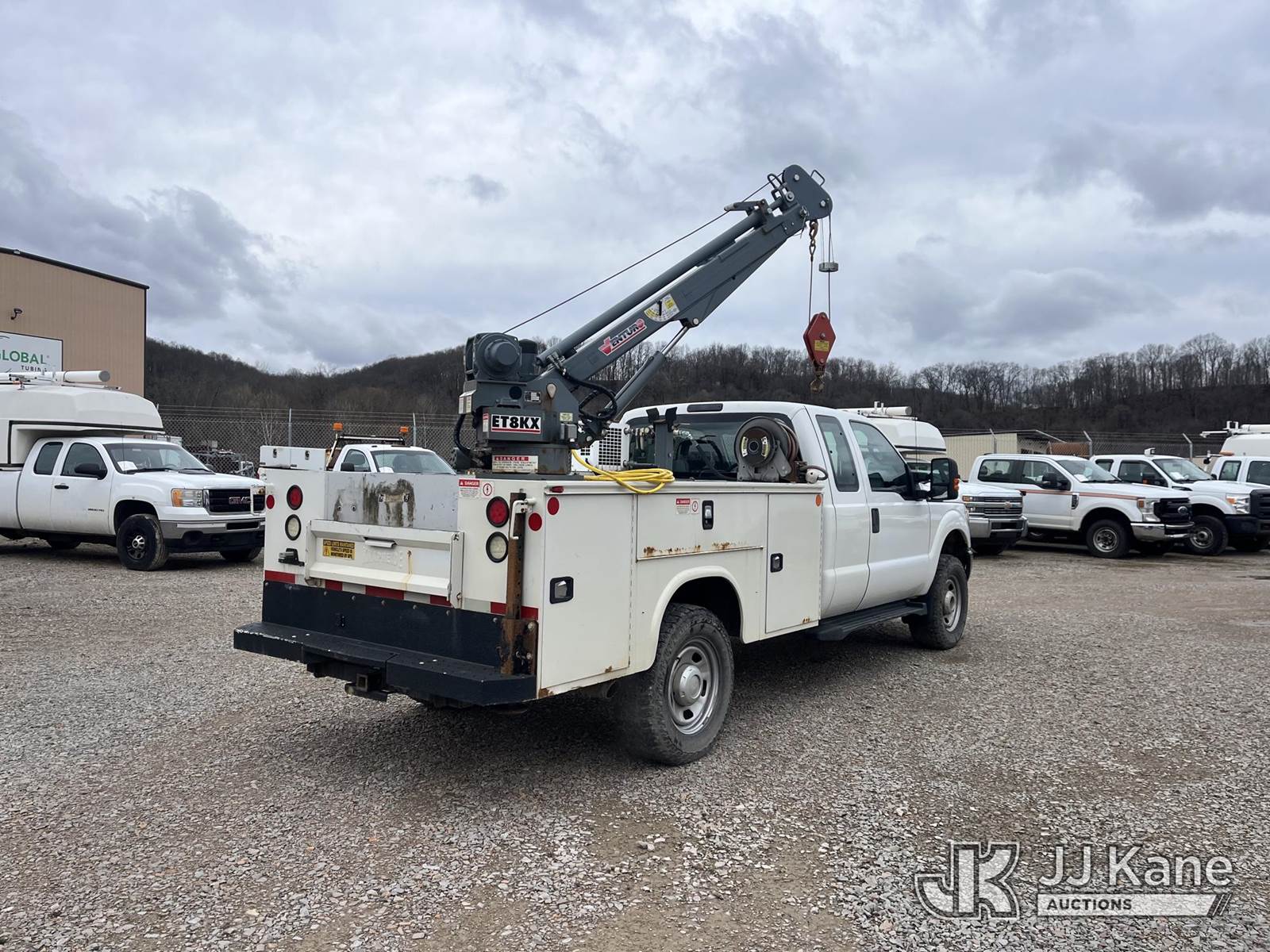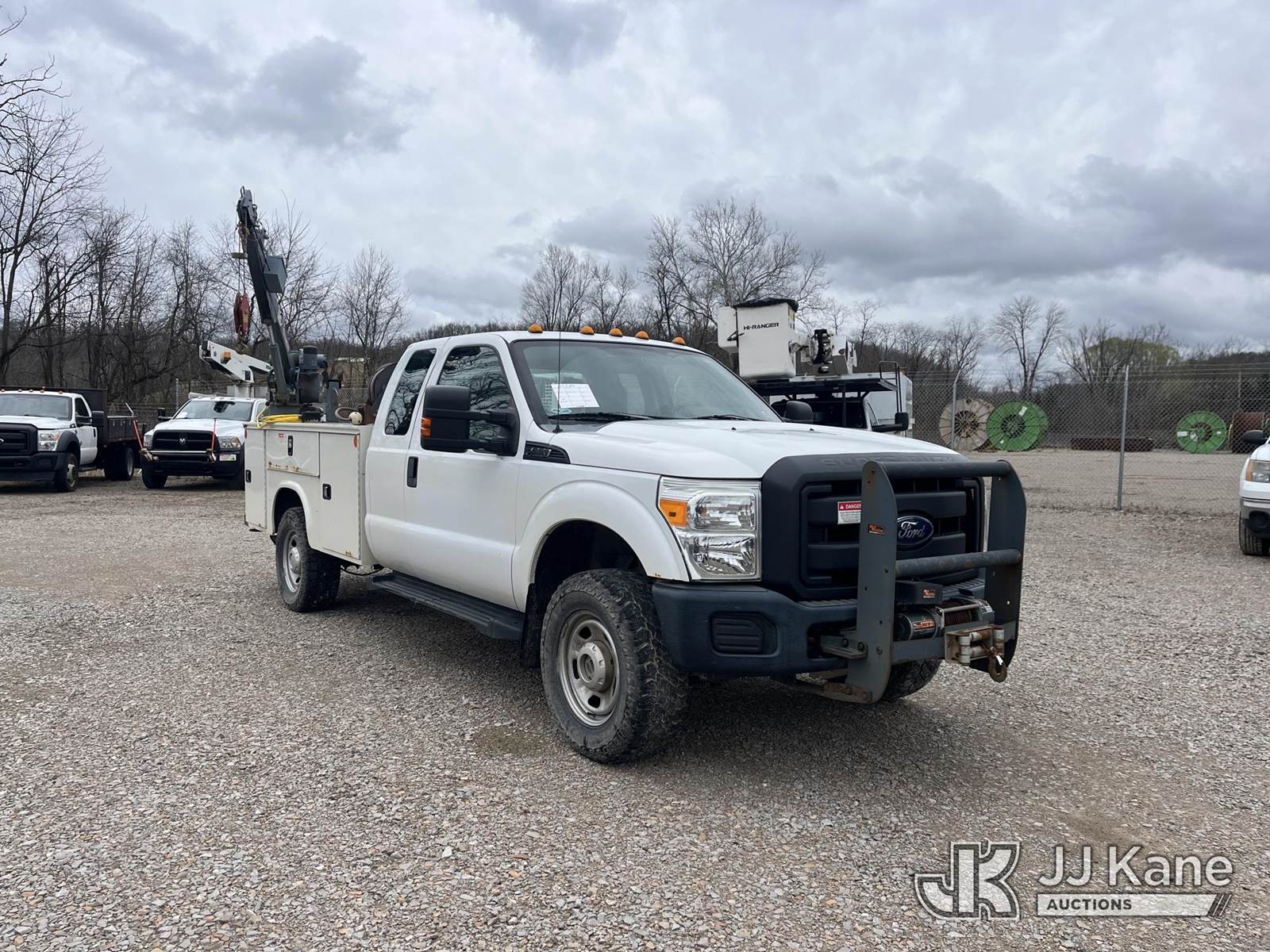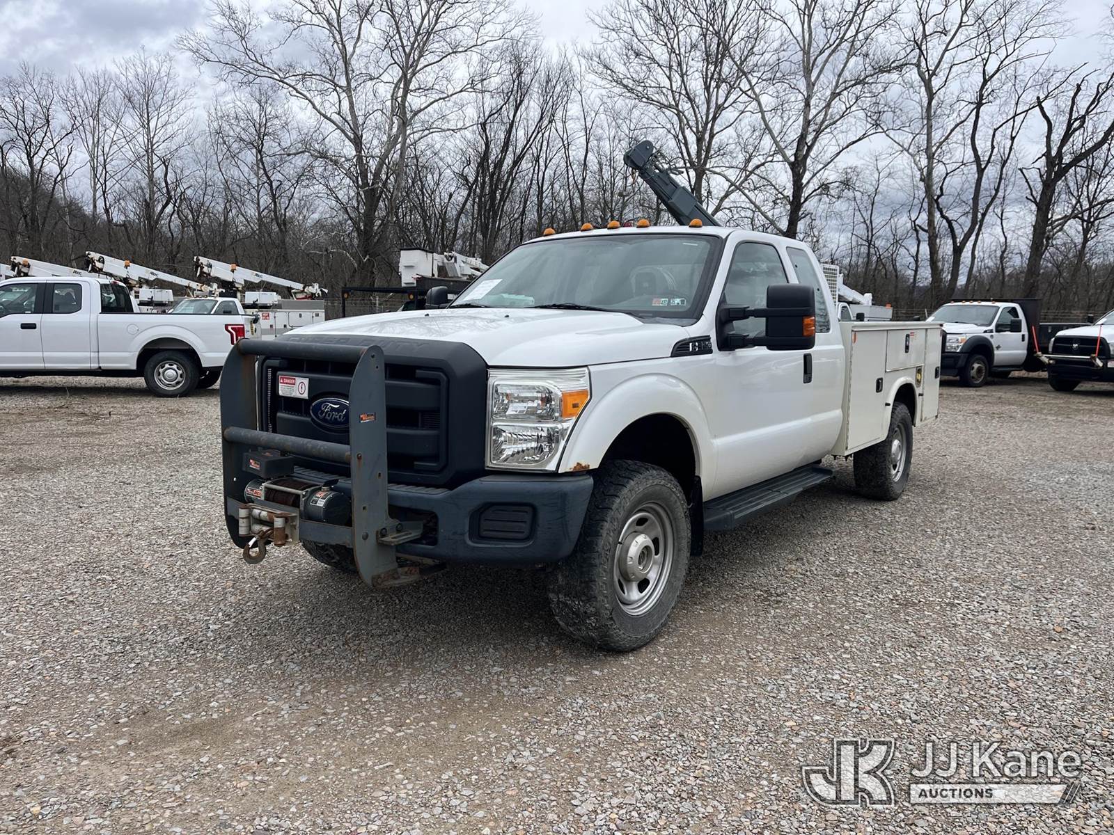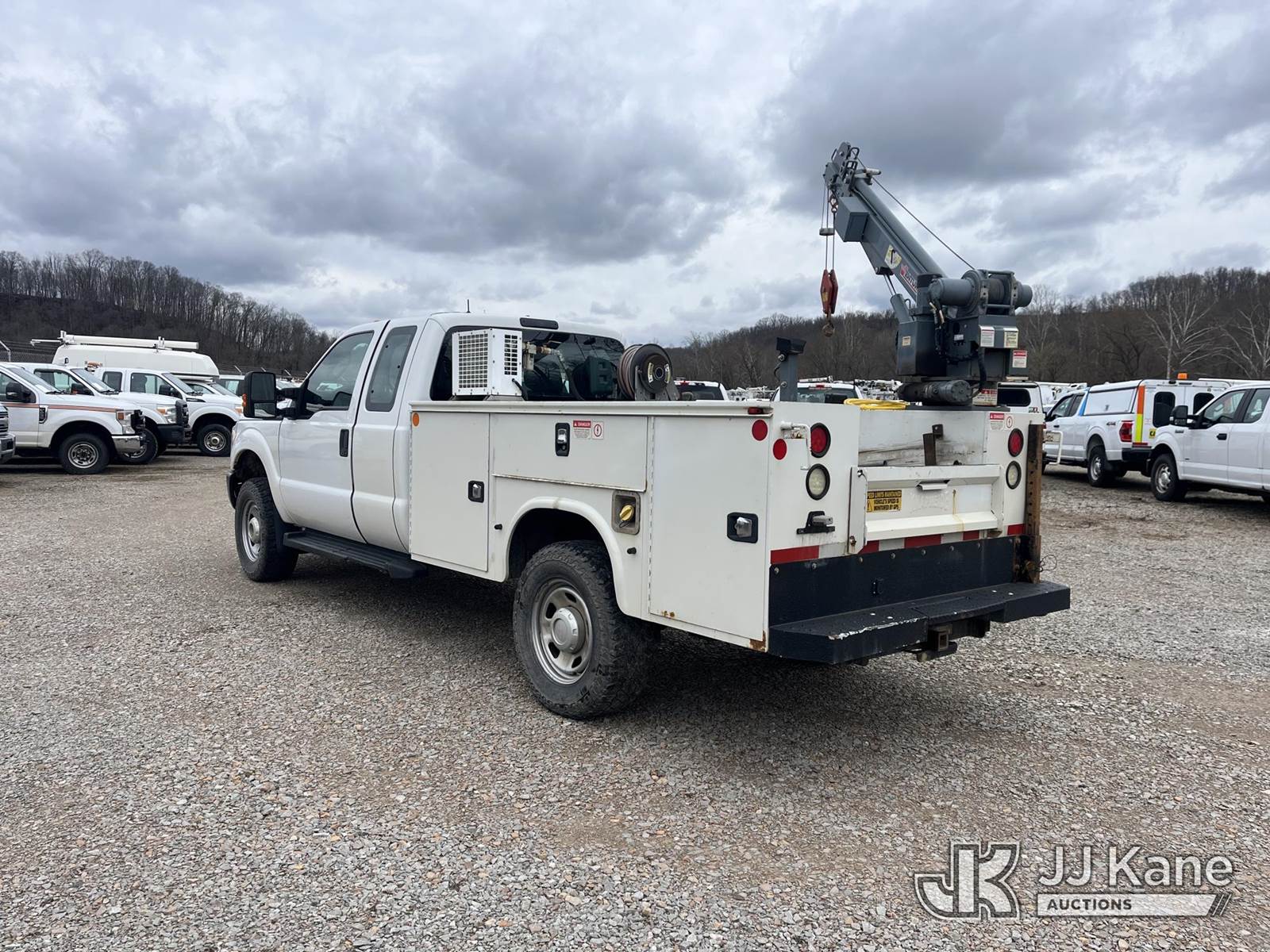 2015 Ford F350 4x4 Extended-Cab Service Truck, 6.2L V8 Gas, Automatic, A/C, with Venturo Crane, VMAC Air Compressor & Mile Marker Front Winch, (74,967 miles) (Runs, Moves & Crane Operates, E-Brake Inop, Compressor Condition Unknown, Jump To Start, Door Damage) This is a Titled Item NOTE: This unit is being sold AS IS/WHERE IS via Timed Auction and is located in Smock, PA. Inspection & preview days for this unit are the 2 business days prior to the first day of items closing for this auction, item is located at 1000 Franklin Dr Smock, PA 15480 and hours of operations are 7:00 am to 3:30 pm. For pre-sale questions, please contact Alaina White @ (724) 562-2575 or Alaina.White@JJKane.com. (Buyer is responsible for removal. Assistance by consignor or JJ Kane Auctions is not assured.)