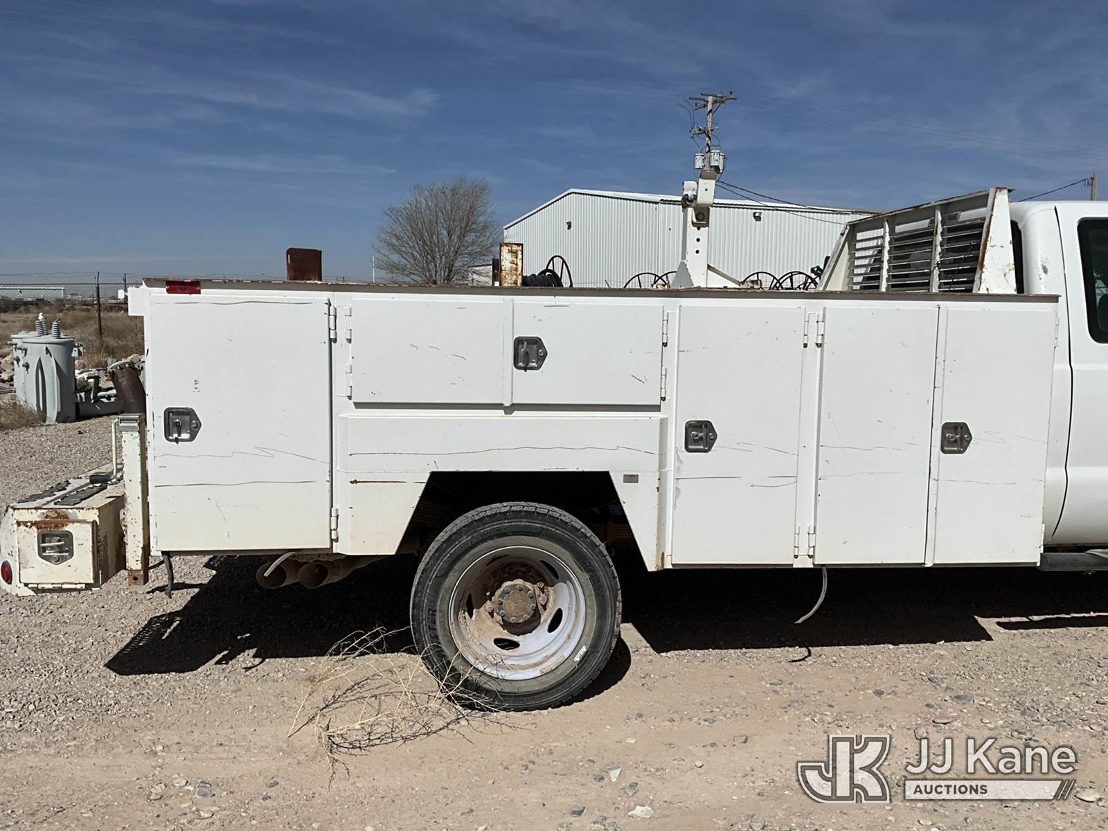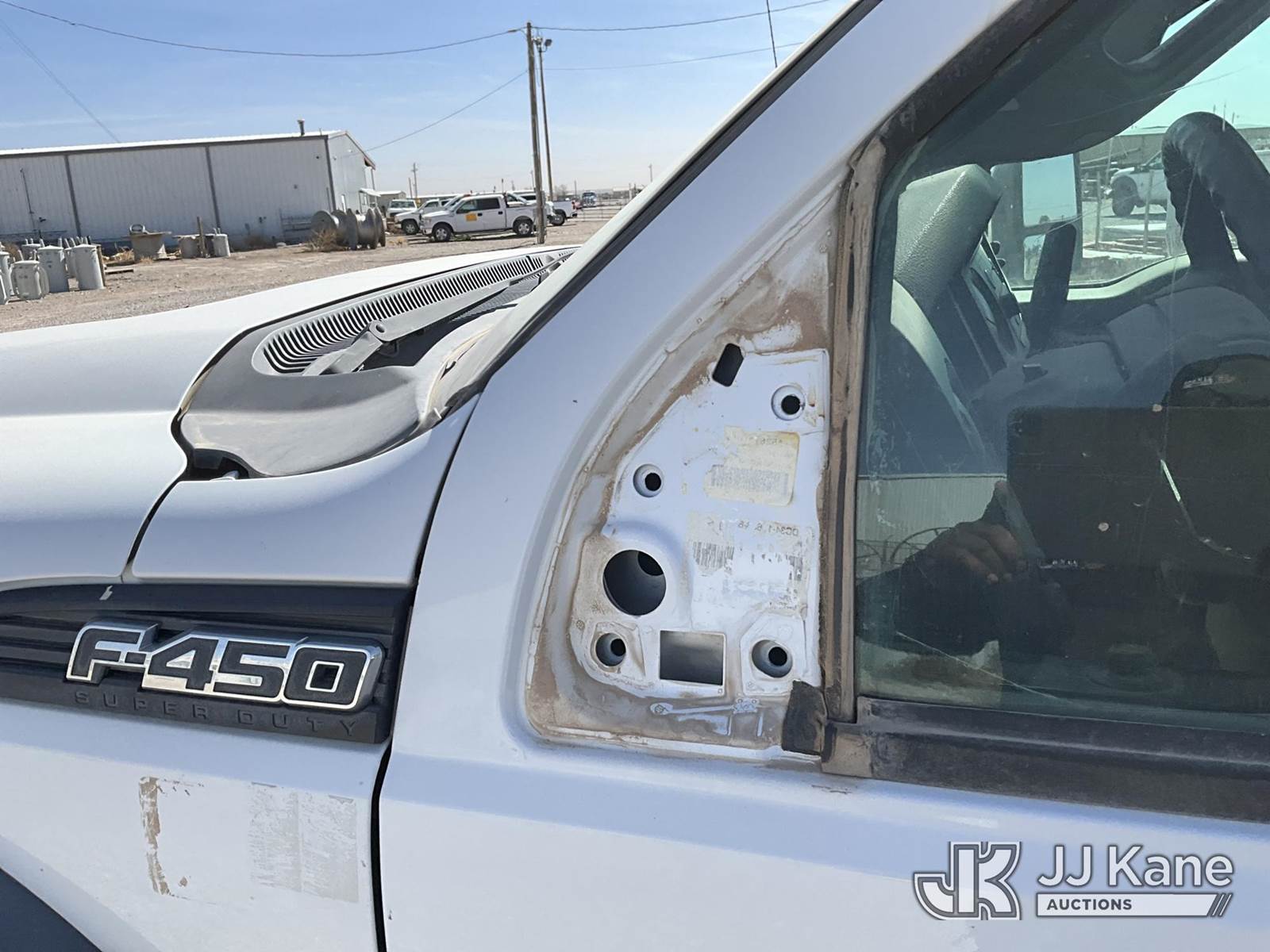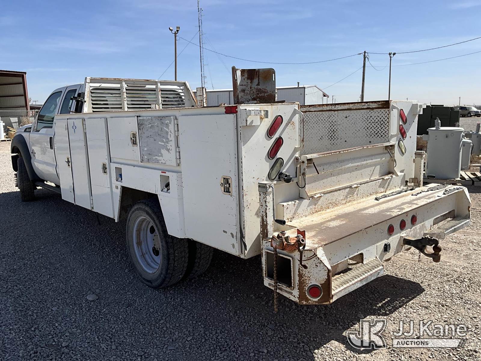 2015 Ford F450 4x4 Extended-Cab Service Truck, 6.7L V8 OHV 16V diesel, Auto, A/C, (299,672 miles) (Runs & Move) (Jump To Start, Driver Side Mirror Removed, Body/Paint Damage) (Seller States: Batteries Weak Needs Jumped, Transmission Needs Repair, Front End Needs Rebuilt) This is a Titled Item NOTE: This unit is being sold AS IS/WHERE IS via Timed Auction and is located in Artesia, NM. For pre sale questions, please contact the JJ Kane Account Manager, EJ Brown, at (915) 341 2565. For load out and pick up information, please refer to the release form provided after purchase. (Buyer is responsible for removal. Assistance by consignor or JJ Kane Auctions is not assured.)
