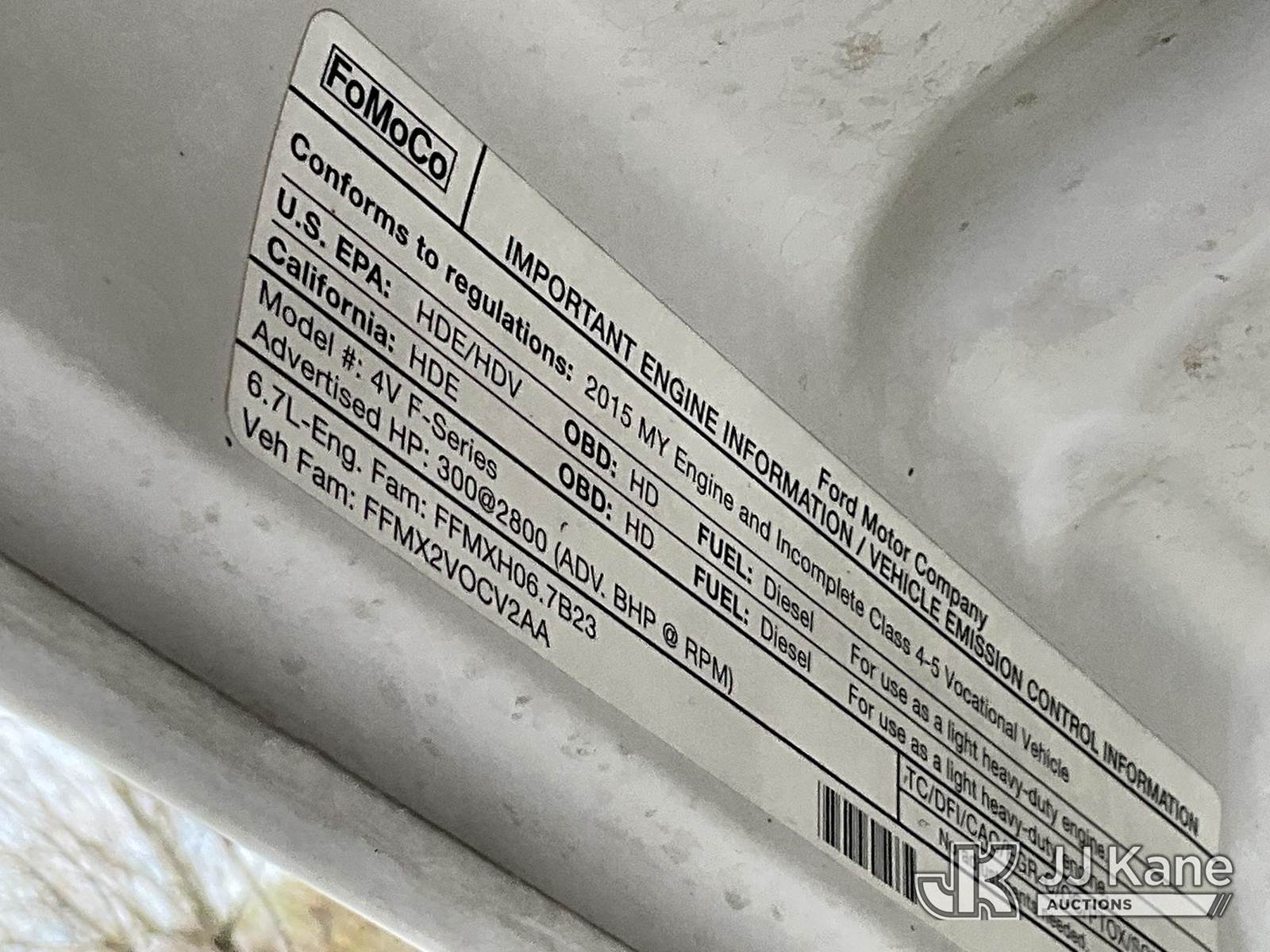 2015 Ford F550 4x4 Extended-Cab Dump Truck, 6.7L diesel, Auto, A/C, (97,819 miles) (Runs, Moves & Dump Operates) This is a Titled Item NOTE: This unit is being sold AS IS/WHERE IS via Timed Auction and is located in Salt Lake City, UT. Inspection & preview days for this unit are the 2 business days prior to the first day of items closing for this auction, item is located at 2353 N Redwood Rd Salt Lake City, UT 84116 and hours of operations are 8a-4p. Titles executed exactly as bidder registered. Ensure your name and/or business name and address in JJ Kane and/or ProxiBid is correct before bidding. For pre-sale questions, please contact Office Staff @ (801) 519-0123. (Buyer is responsible for removal. Assistance by consignor or JJ Kane Auctions is not assured.)