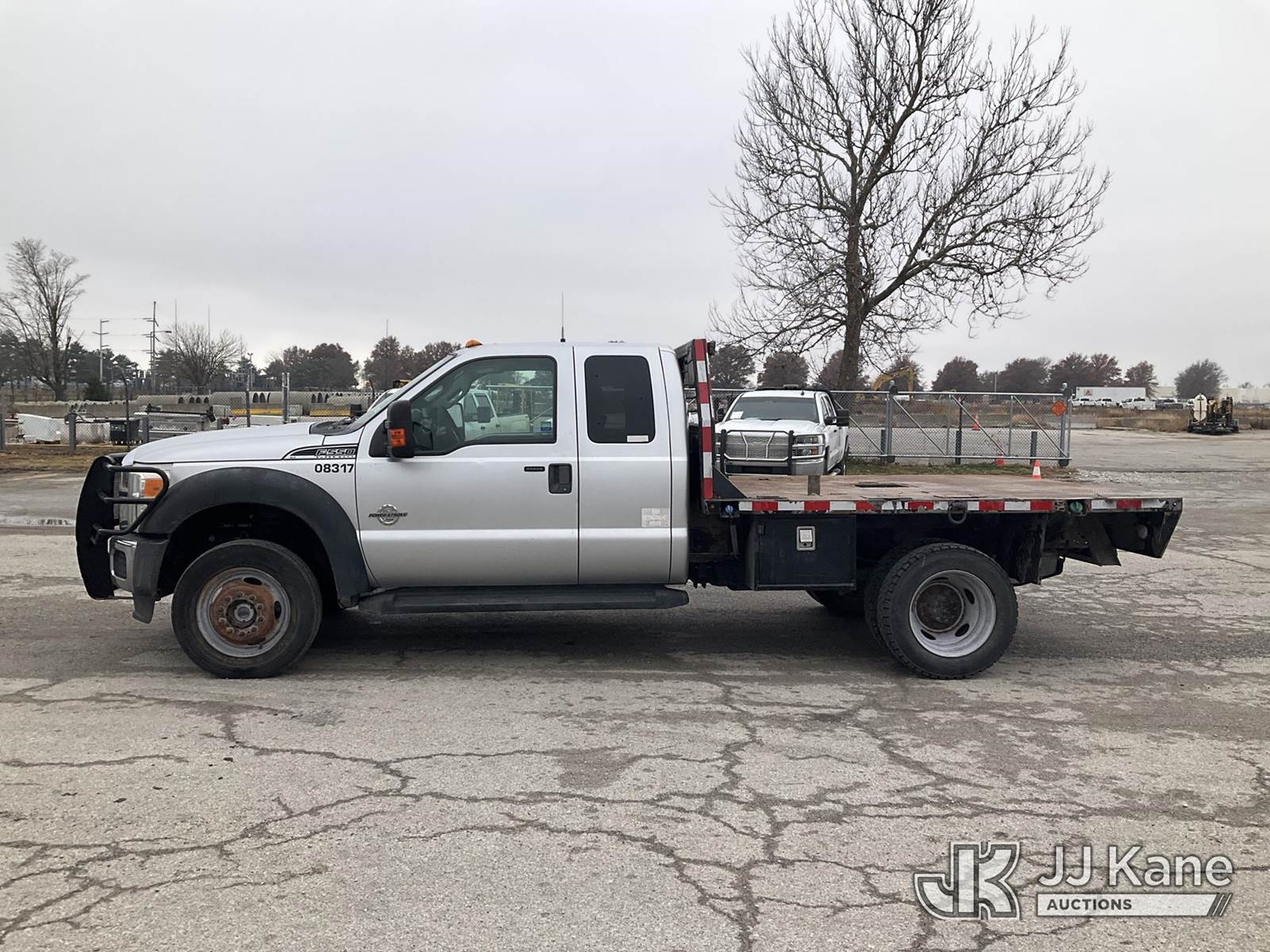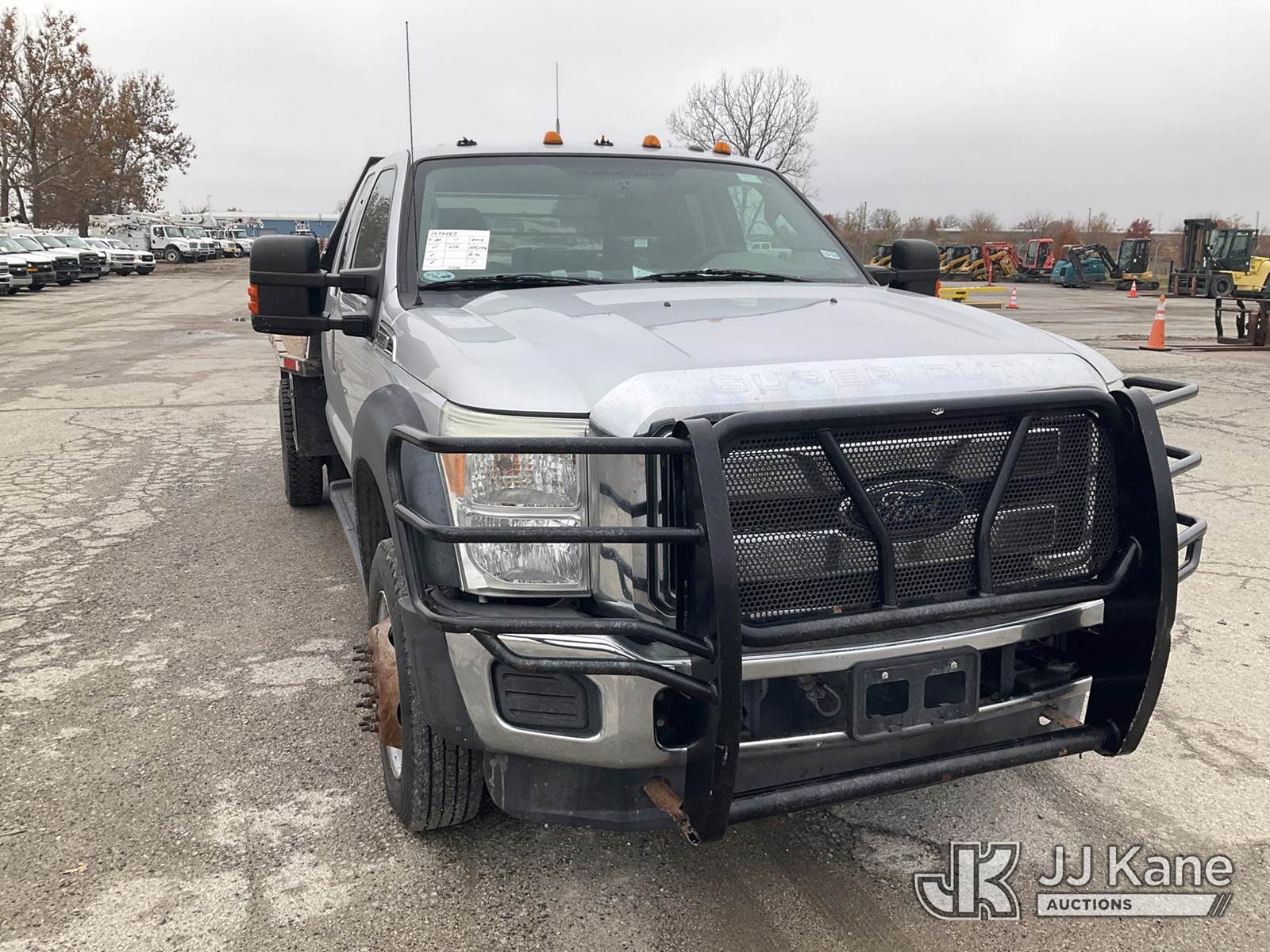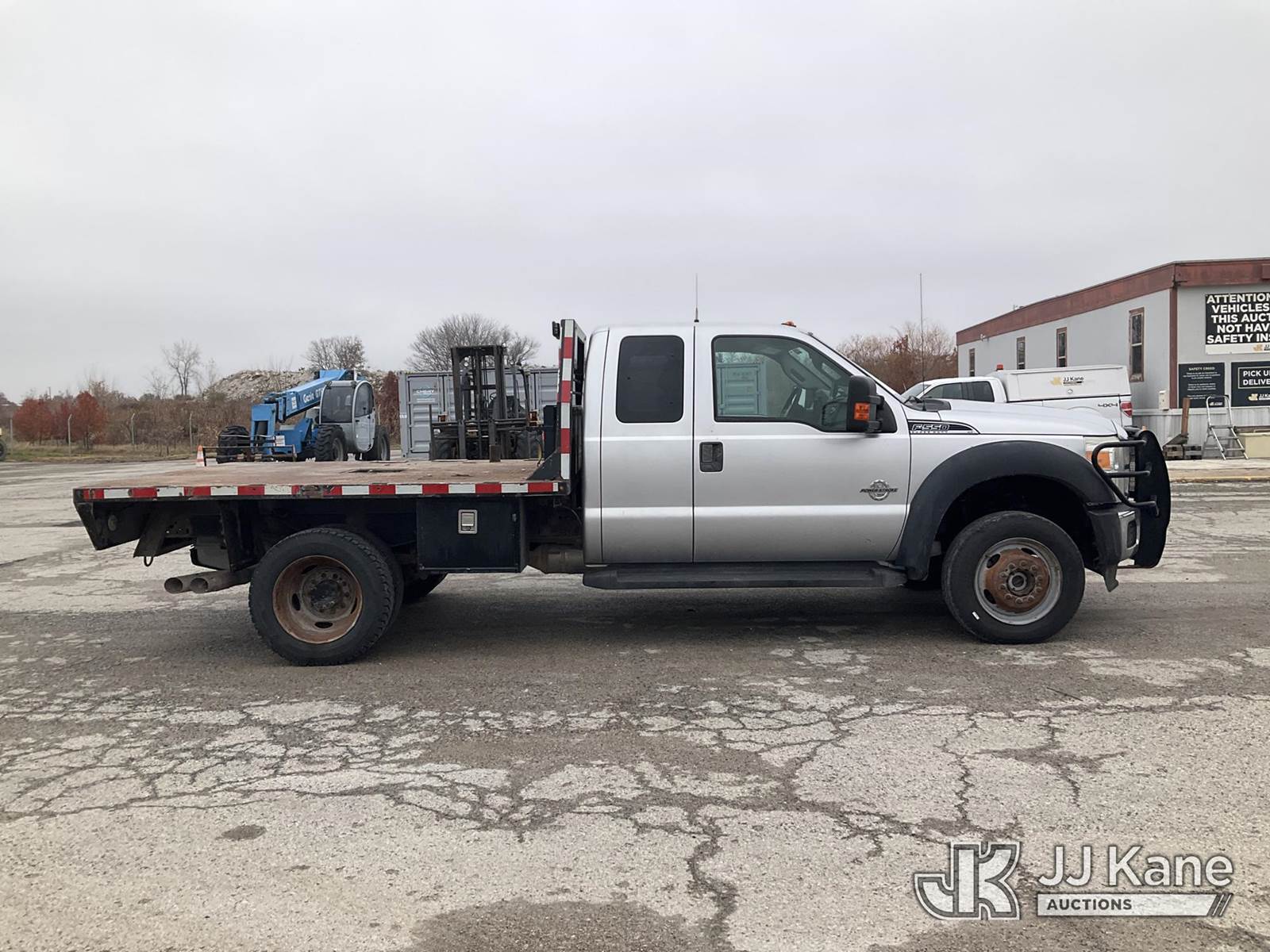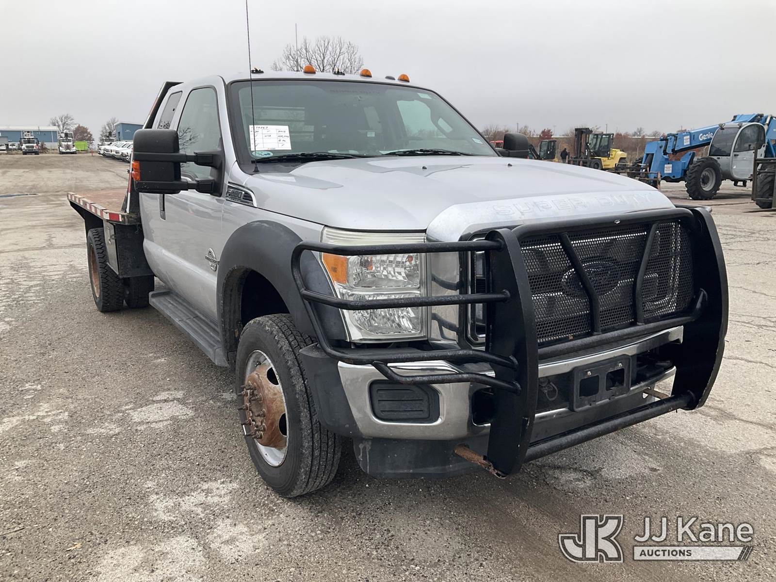 2015 Ford F550 4x4 Extended-Cab Flatbed Truck, 6.7L diesel, Auto, A/C, (105,145 miles) (Runs & Moves) (Check Engine Light On, Body Damage) (Seller States: Steering Box Is Off By A Gear, Doesn't Turn Fully To The Right) This is a Titled Item NOTE: This unit is being sold AS IS/WHERE IS via Timed Auction and is located in Kansas City, MO. For more information & removal arrangements please contact Ricky McPherson @ 816-610-2250. (Buyer is responsible for removal. Assistance by consignor or JJ Kane Auctioneers is not assured.)