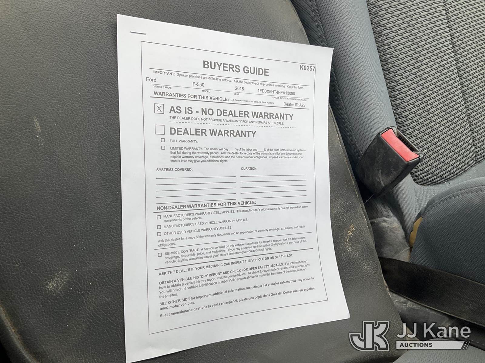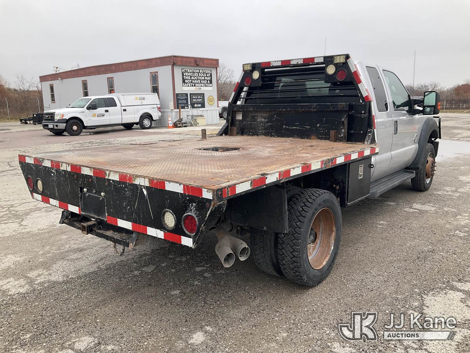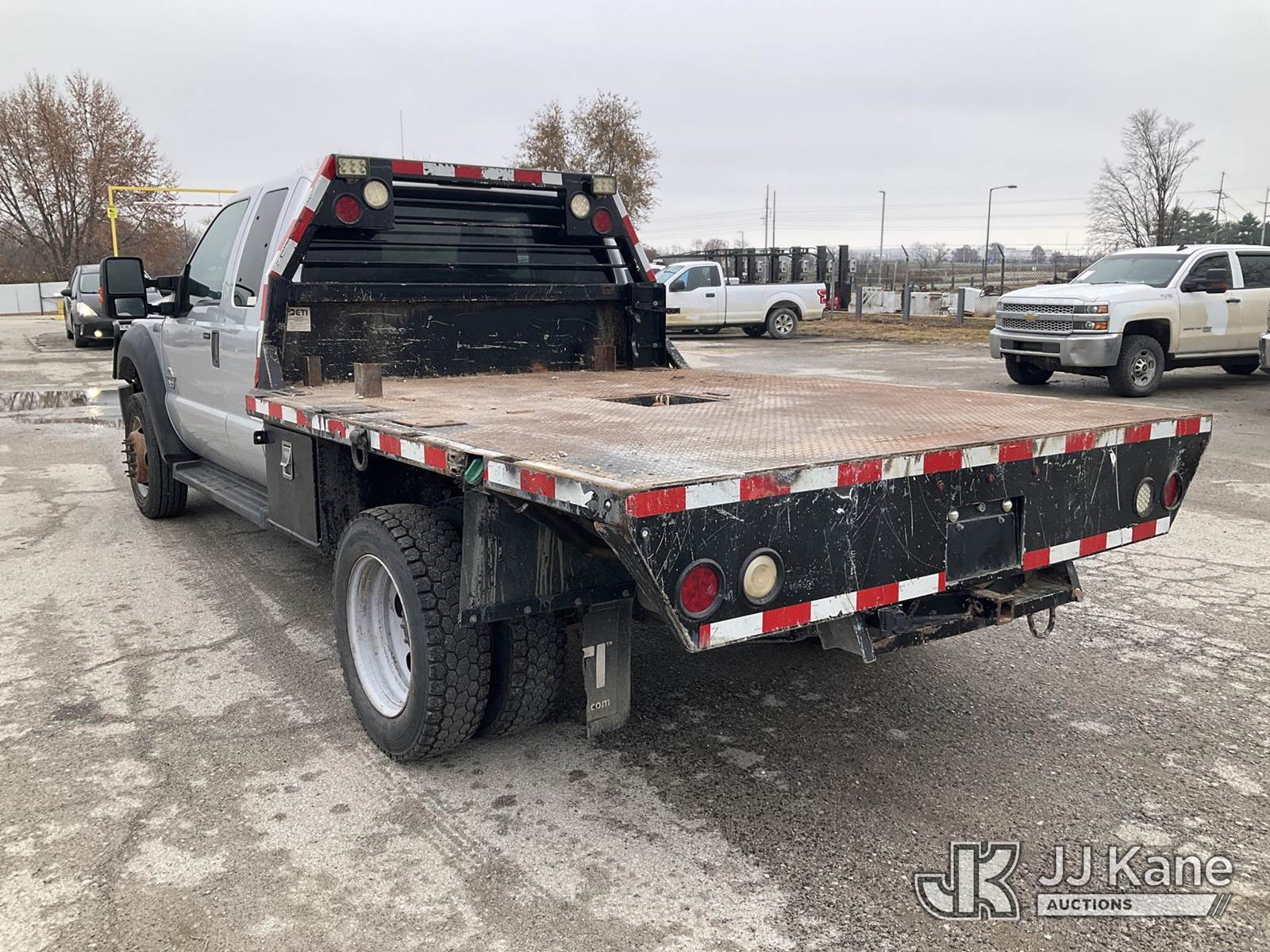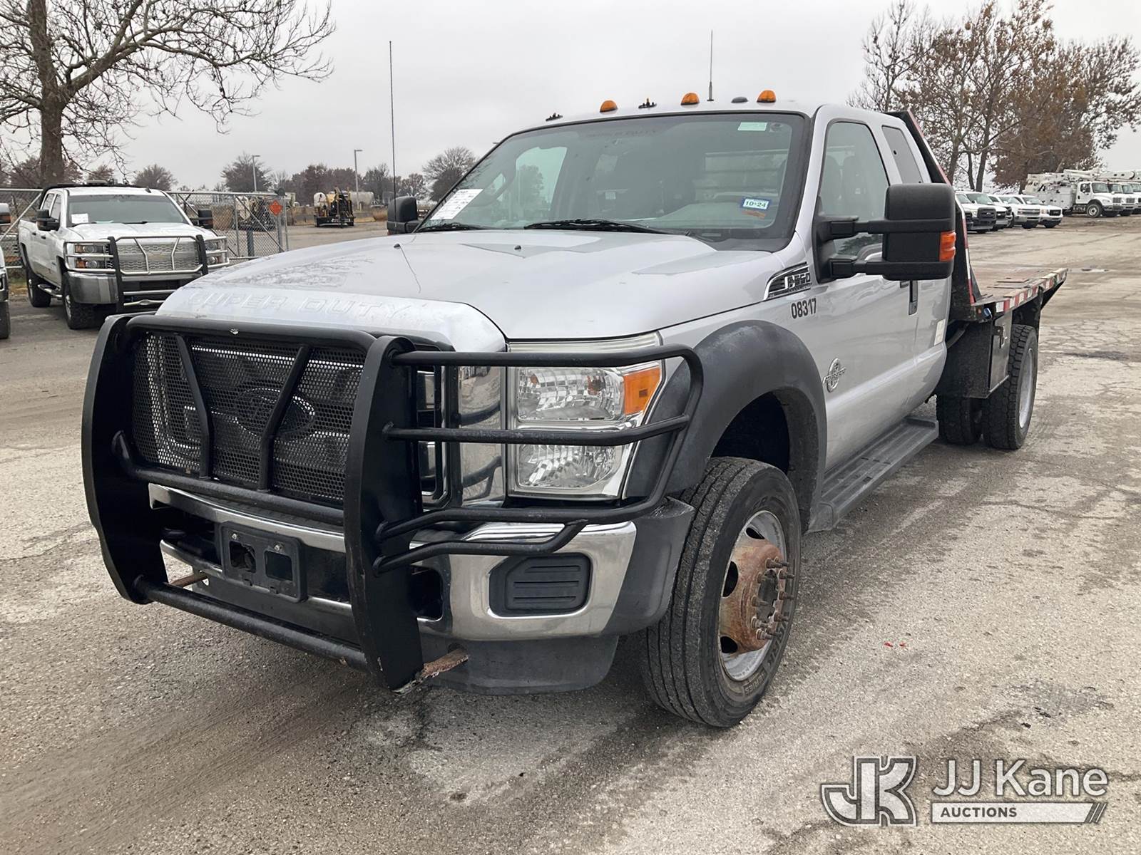 2015 Ford F550 4x4 Extended-Cab Flatbed Truck, 6.7L diesel, Auto, A/C, (105,145 miles) (Runs & Moves) (Check Engine Light On, Body Damage) (Seller States: Steering Box Is Off By A Gear, Doesn't Turn Fully To The Right) This is a Titled Item NOTE: This unit is being sold AS IS/WHERE IS via Timed Auction and is located in Kansas City, MO. For more information & removal arrangements please contact Ricky McPherson @ 816-610-2250. (Buyer is responsible for removal. Assistance by consignor or JJ Kane Auctioneers is not assured.)