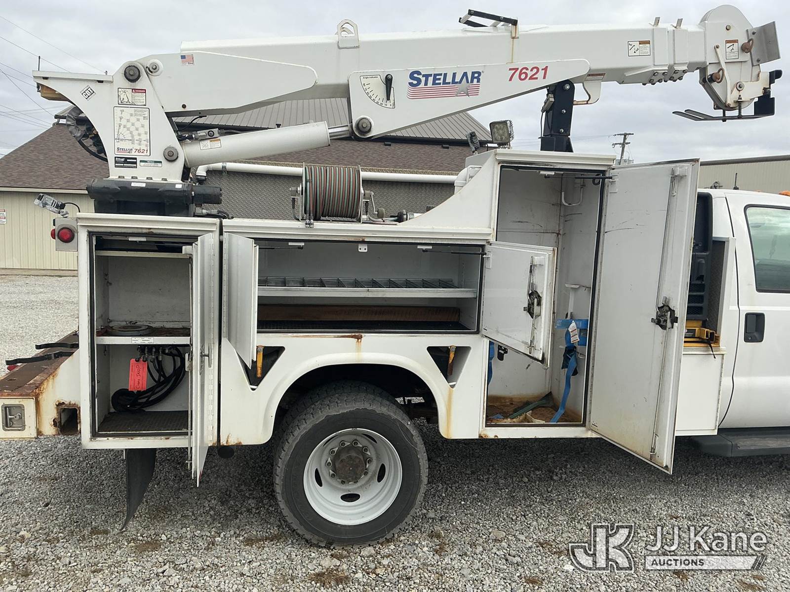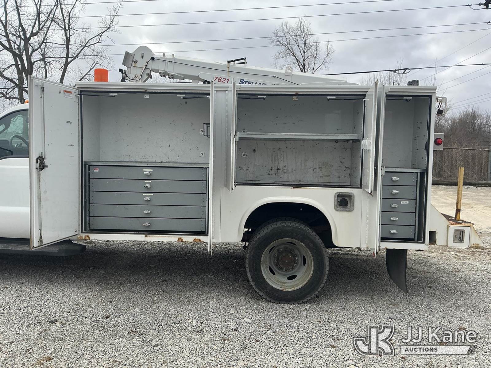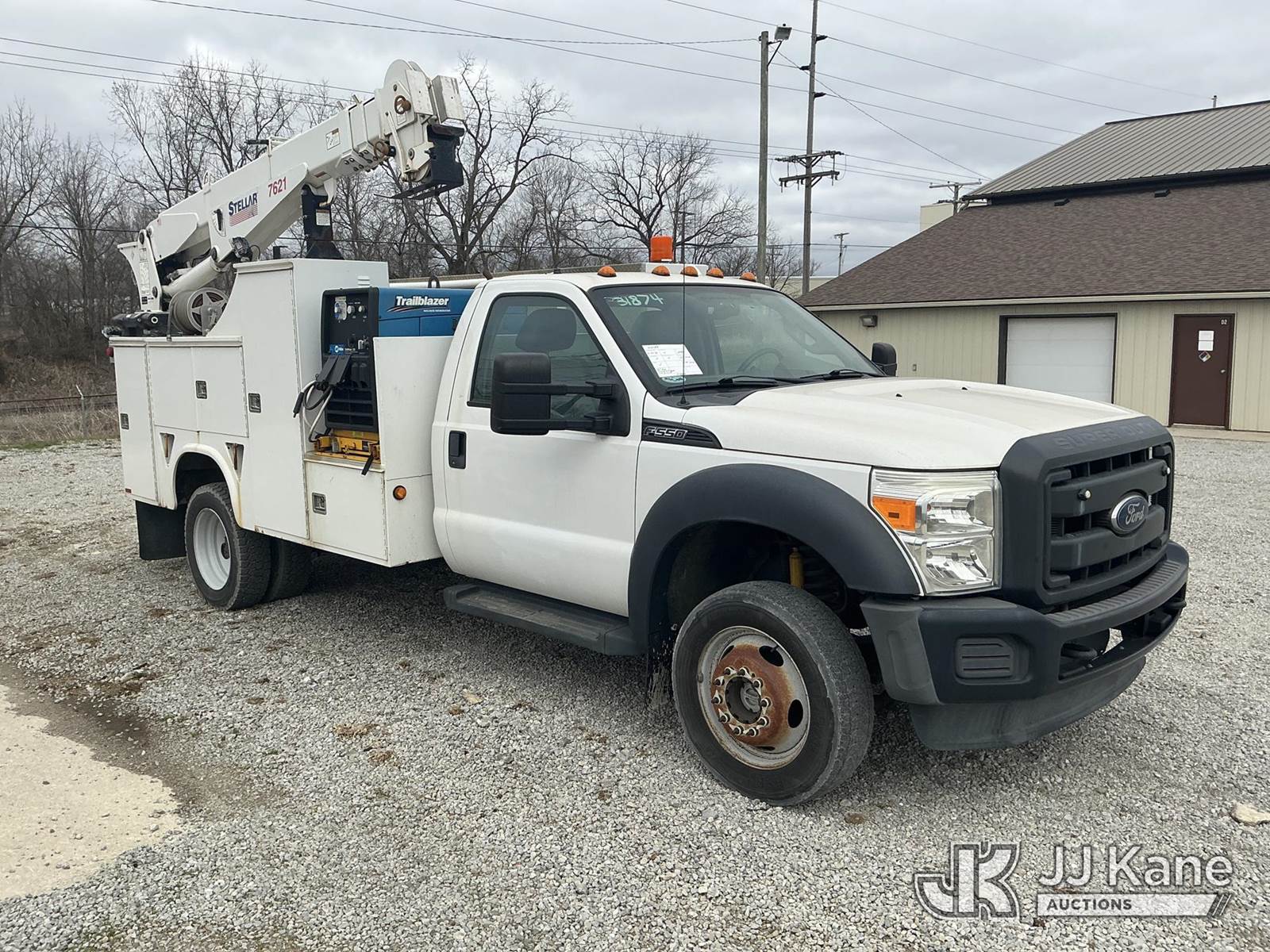 2015 Ford F550 4x4 Mechanics Service Truck, s/n 1FDUF5HY9FEC17691, V-10 6.8 L gas, Auto, A/C, with Stellar 7621 7500lb. material crane, bed winch & Miller Trailblazer 325 generator, (63,414 miles) (Runs & Moves) (Crane Inoperable, Condition Unknown) (Generator Operates & Shows 511 Hours) (Reads 4,936 hours) This is a Titled Item NOTE: This unit is being sold AS IS/WHERE IS via Timed Auction and is located in Fort Wayne, IN. Inspection & preview days for this unit are the 2 business days prior to the first day of items closing for this auction, item is located at 3020 Commercial Rd Fort Wayne, IN 46809 and hours of operations are 8a-4p. For pre-sale questions, please contact Eric Mcintosh @ (260) 205-2483 (Buyer is responsible for removal. Assistance by consignor or JJ Kane Auctions is not assured.)