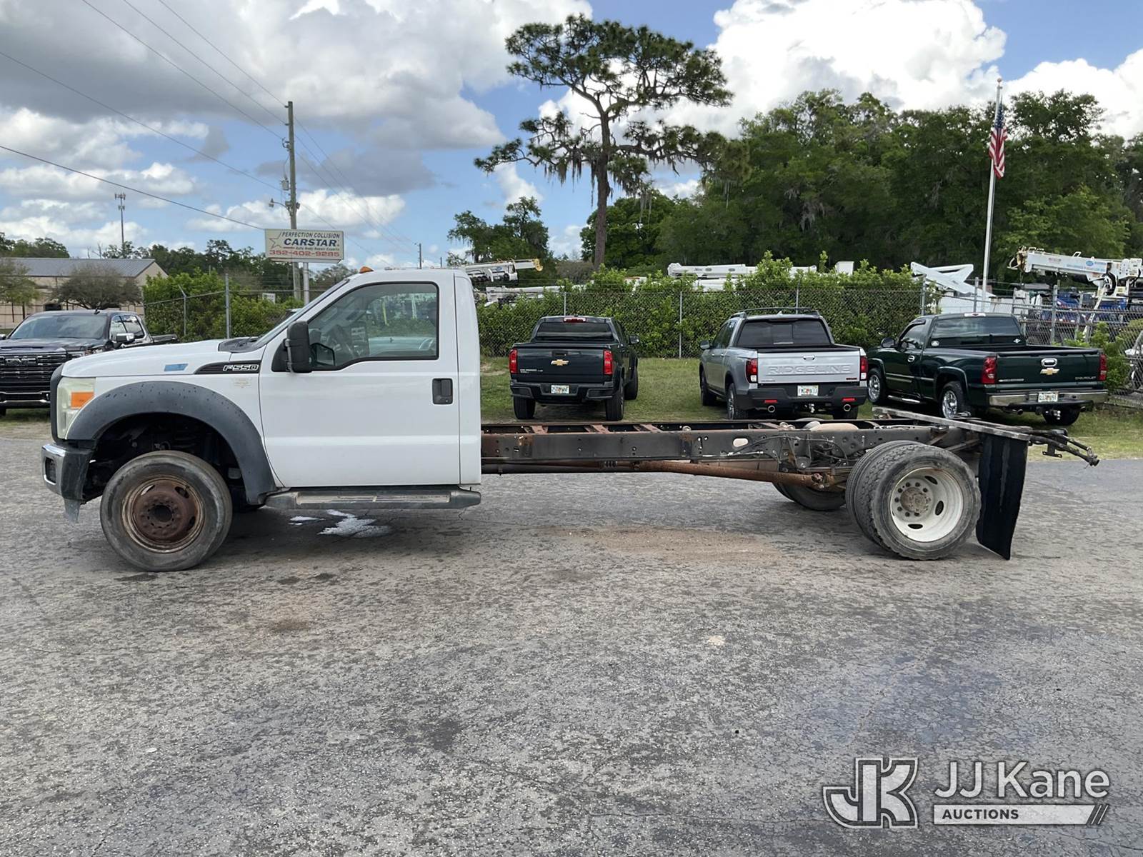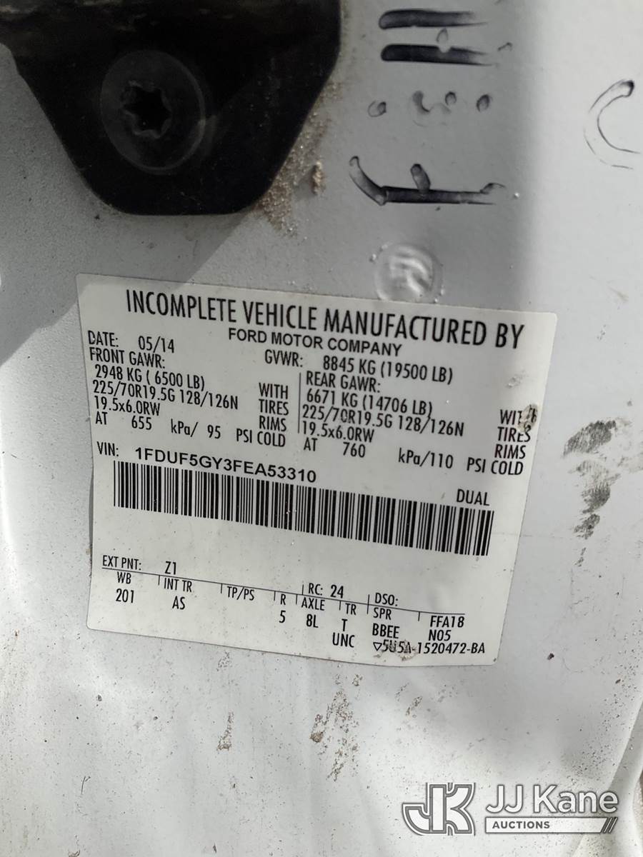 2015 Ford F550 Cab & Chassis, 10-cyl gas, RWD, Auto, A/C, (114,961 miles) (Runs & Moves) (Air Bag Light On, Minor Body/Paint Issues) This is a Titled Item NOTE: This unit is being sold AS IS/WHERE IS via Timed Auction and is located in Ocala, FL. Inspection & preview days for this unit are by appointment only; please contact us at contact@jjkane.com or 84-Go-JJKane for more details. For more information & removal arrangements please contact Mike Lessard @ (352) 629-6677. (Buyer is responsible for removal. Assistance by consignor or JJ Kane Auctions is not assured.)