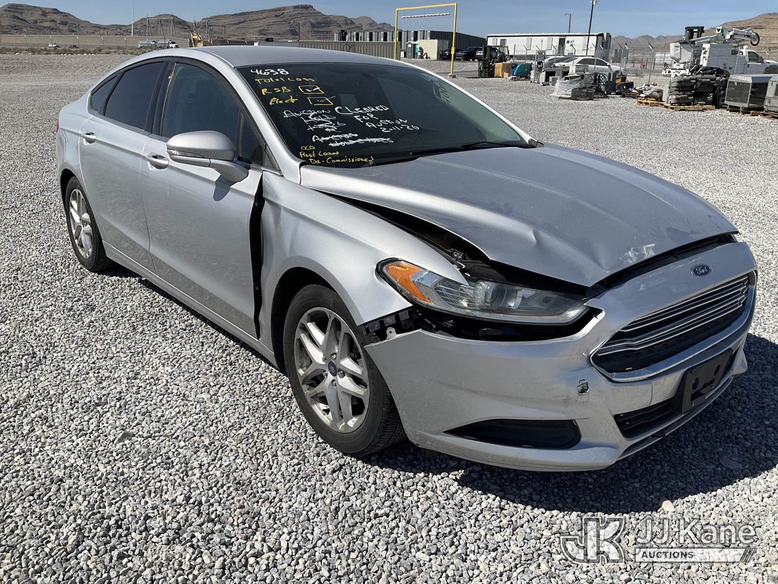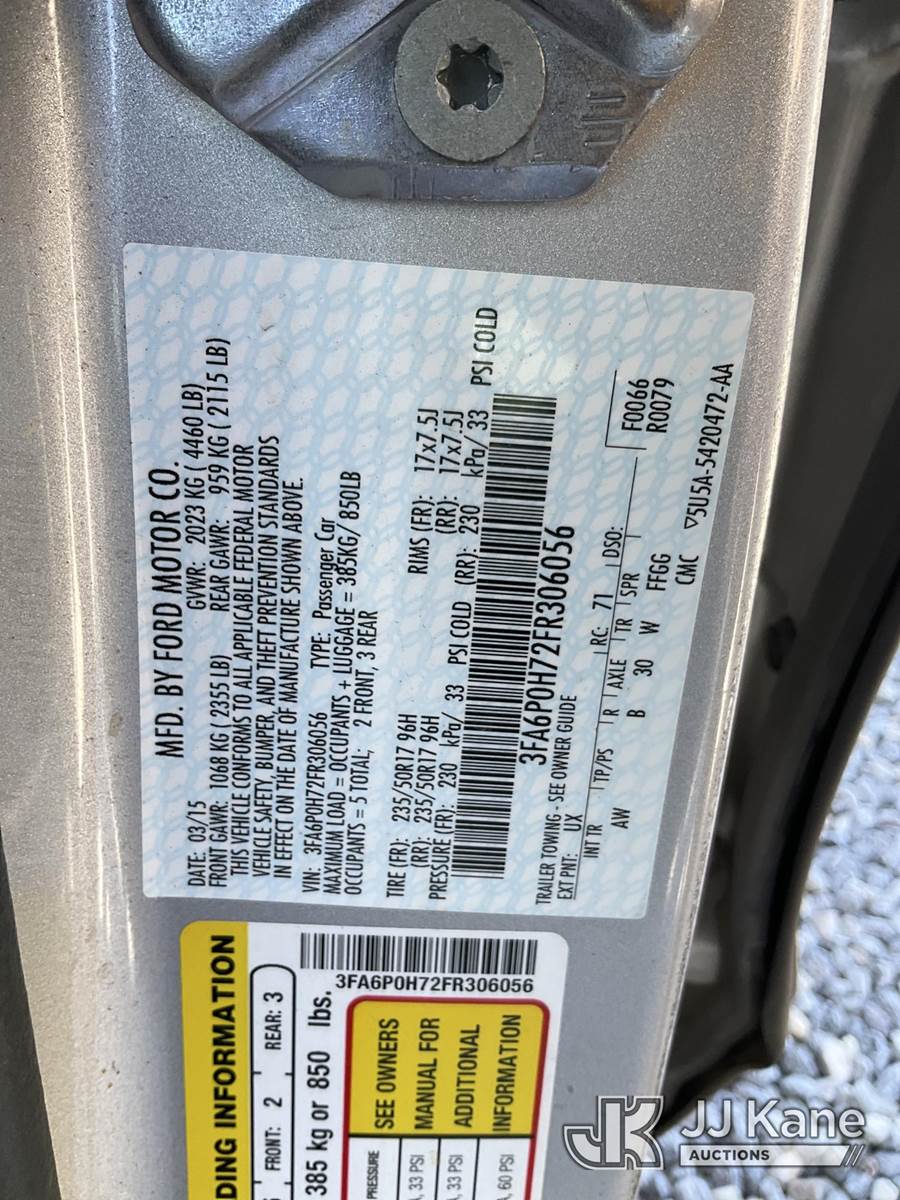 2015 Ford Fusion SE 4-Door Sedan, 4-cyl gas, FWD, Auto, A/C, (111,845 miles) (Wrecked, Airbags Deployed, Jump To Start, Runs & Moves, No Regular Rear Tire/Spare Only) This is a Titled Item NOTE: This unit is being sold AS IS/WHERE IS via Timed Auction and is located in Las Vegas, NV. Inspection & preview days for this unit are the 2 business days prior to the first day of items closing for this auction, item is located at 14655 Grand Valley Pkwy Las Vegas, NV 89165 and hours of operations are 8a-4p. Titles executed exactly as bidder registered. Ensure your name and/or business name and address in JJ Kane and/or ProxiBid is correct before bidding. For pre-sale questions, please contact Office Staff @ (801) 519-0123 and provide sale date and lot number. Las Vegas Dealer License Number DLR000053086 / OHV000053094. (Buyer is responsible for removal. Assistance by consignor or JJ Kane Auctions is not assured.)
