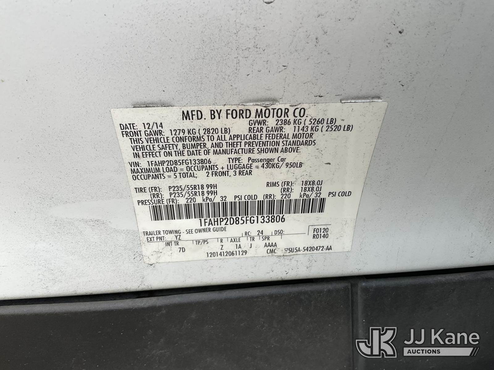 2015 Ford Taurus 4-Door Sedan, 3.5L V6 DOHC 24V gas, FWD, 6-Speed Automatic, A/C, (147,326 miles) State of FL Unit (Runs & Moves) (FL Residents Purchasing Titled Items – tax, title & registration fees will be collected at the maximum rate of $400.00 under 25,999 and $800.00 for Over 26,000 and $250.00 trailers – Proof of insurance is mandatory; Out of State Residents Purchasing Title Items – tax will be collected based upon your state rate.) This is a Titled Item NOTE: This unit is being sold AS IS/WHERE IS via Timed Auction and is located in Thonotosassa, FL. Inspection & preview days for this unit are the 2 business days prior to the first day of items closing for this auction, item is located at 11720 N US 301 Thonotosassa, Fl 33592 and hours of operations are 8a-4p. For pre-sale questions, please contact Office Staff @ (813) 986-2485. (Buyer is responsible for removal. Assistance by consignor or JJ Kane Auctions is not assured.)