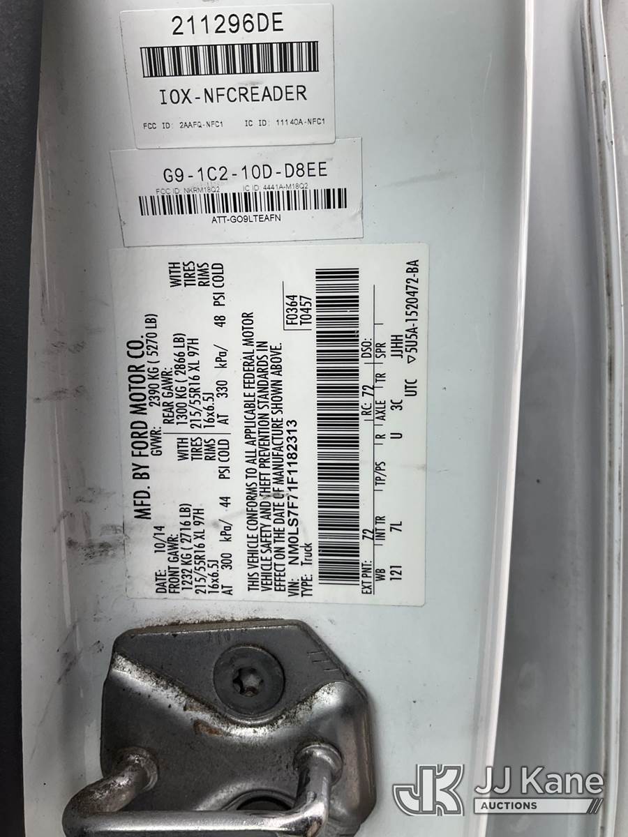 2015 Ford Transit Connect XLT LWB Cargo Van, s/n NM0LS7F71F1182313, 2.5L L4 DOHC 16V FWD, GAS, 6-Speed Automatic, A/C, (98,451 miles) (Runs & Moves) This is a Titled Item NOTE: This unit is being sold AS IS/WHERE IS via Timed Auction and is located in Dixon, CA. Inspection & preview days for this unit are the 2 business days prior to the first day of items closing for this auction, item is located at 8668 Sparling Ln Dixon, CA 95620 and hours of operations are 8a-4p. For pre-sale questions, please contact JJ Kane Staff at (707) 678-8060 (dixon@jjkane.com). Dealer License Number 45696. (Buyer is responsible for removal. Assistance by consignor or JJ Kane Auctions is not assured.)