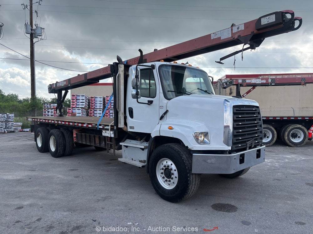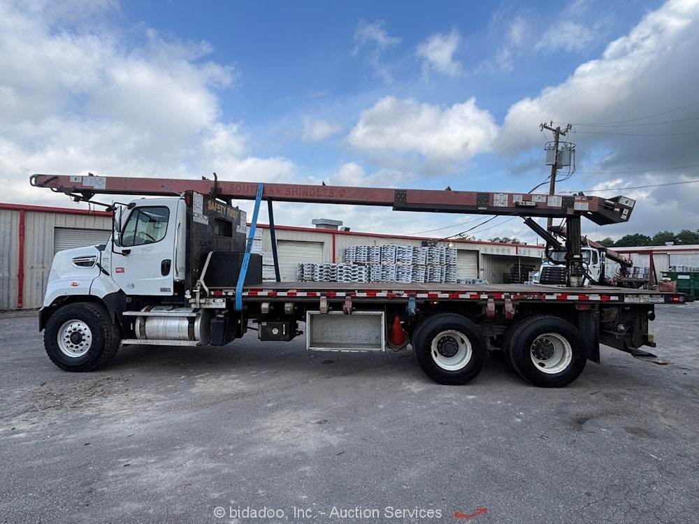 2015 FREIGHTLINER 108SD T/A 28' Flatbed Palfinger Roofing Conveyor Truck bidadoo