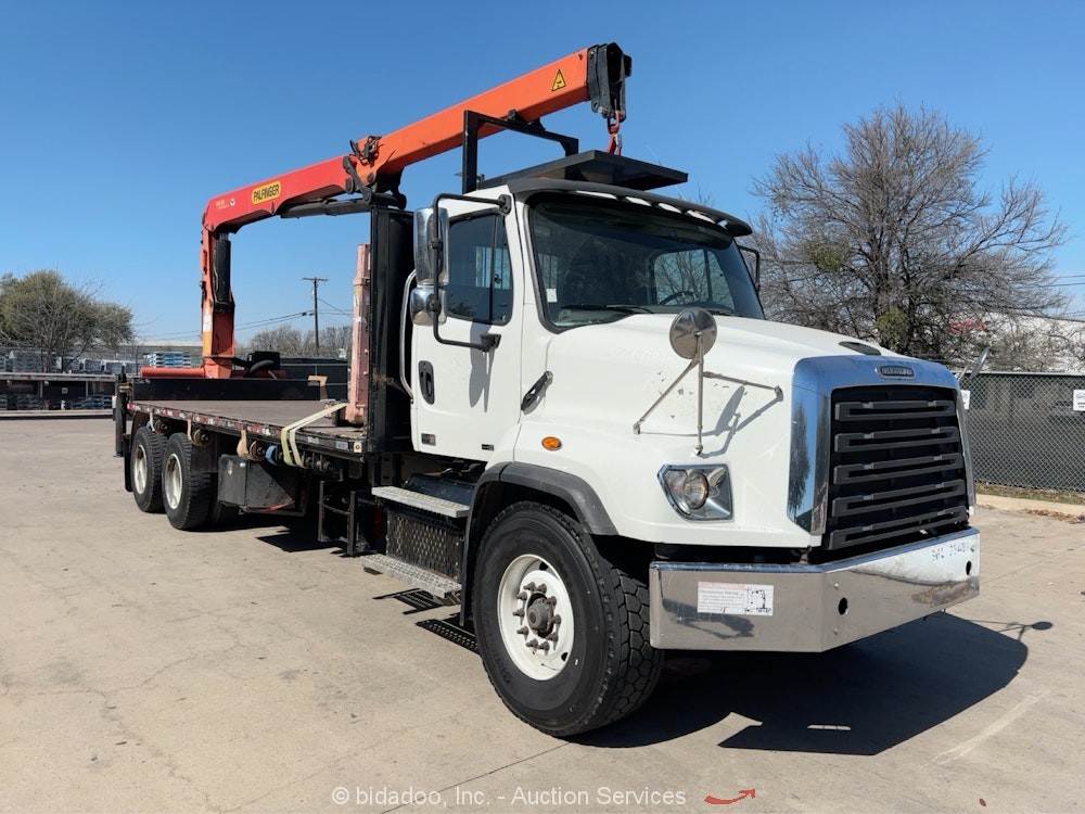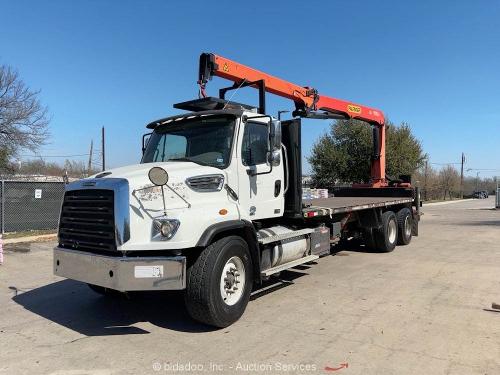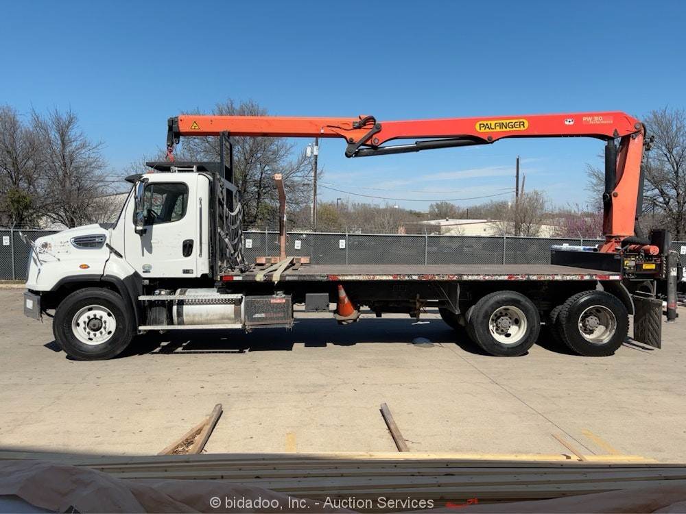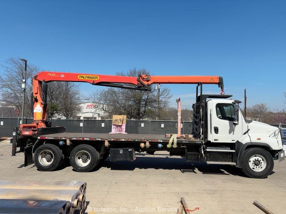2004 International 4300 Manitex Skycrane 75' Boom 18' Flatbed Truck PTO bidadoo