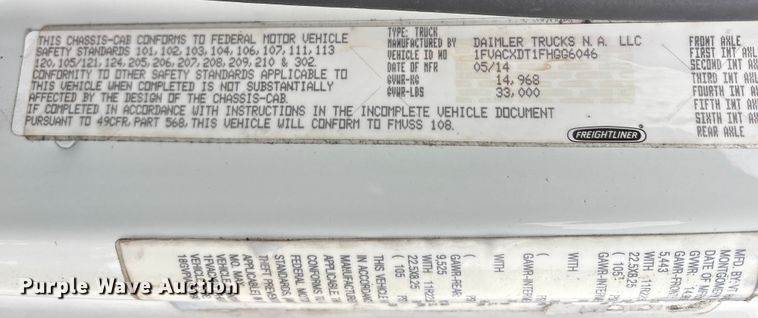 2014 Freightliner Business Class M2 refrigerated truck, Miles: 356,959 on odometer, Hours: 15,548 on meter, VIN: 3ALACXDT1EDFR1244, Engine...