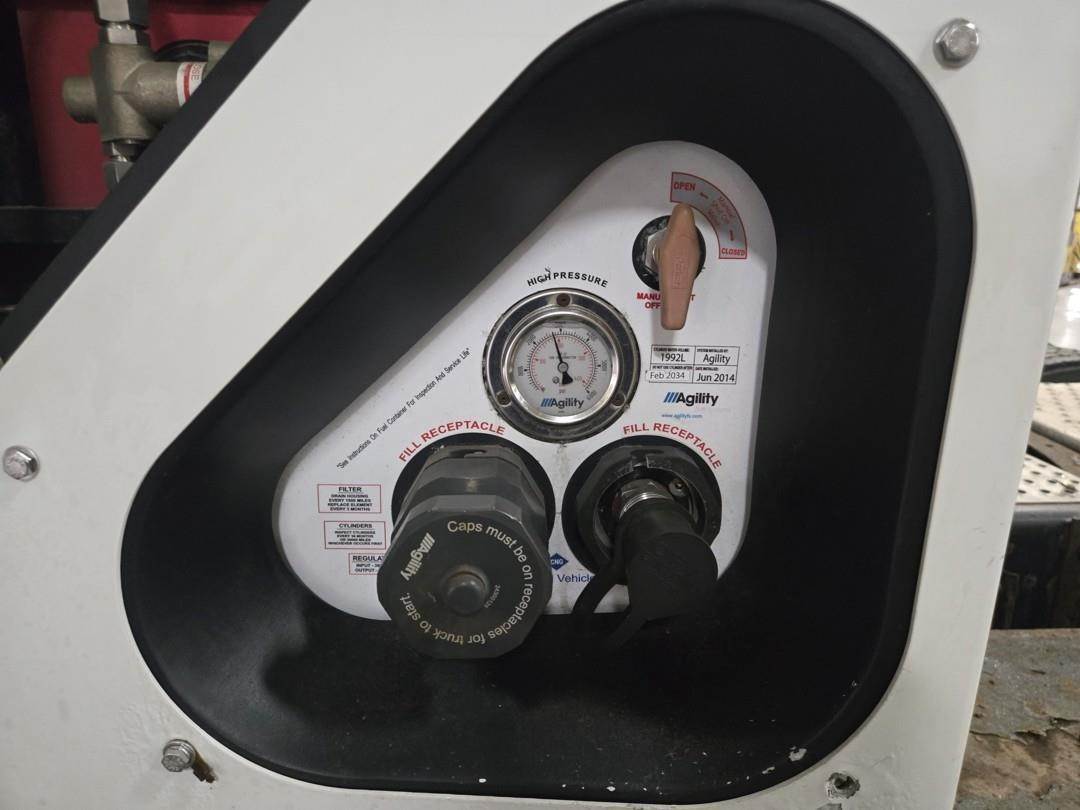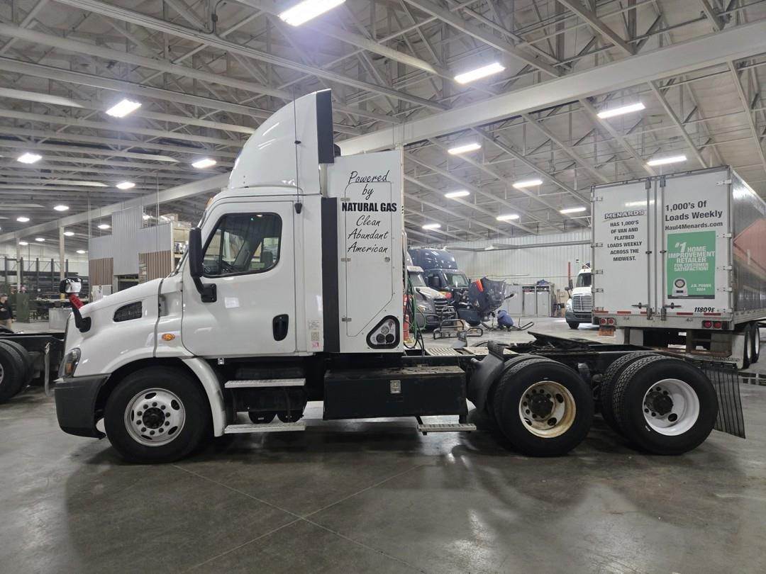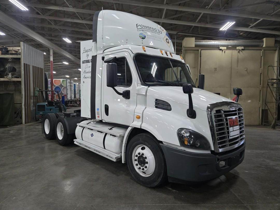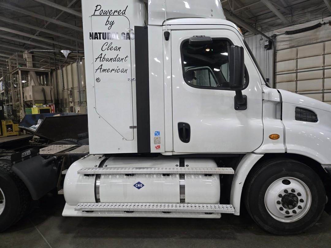 Cummins Turbo CNG Engine, Eaton Fuller Manual Transmission, Inter Axle Lock, GVWR: 52000lbs, Approx. 2' Air Sliding Fifth Wheel, Air Ride Suspension, Single Frame, Wind Deflector, Toolbox, Day Cab, Suspension Seats, Heat, AC, Bluetooth Radio, Engine Braking, Cruise Control, Heated Mirrors, Power Windows, Power Mirrors, 295/75R22.5 Tires
