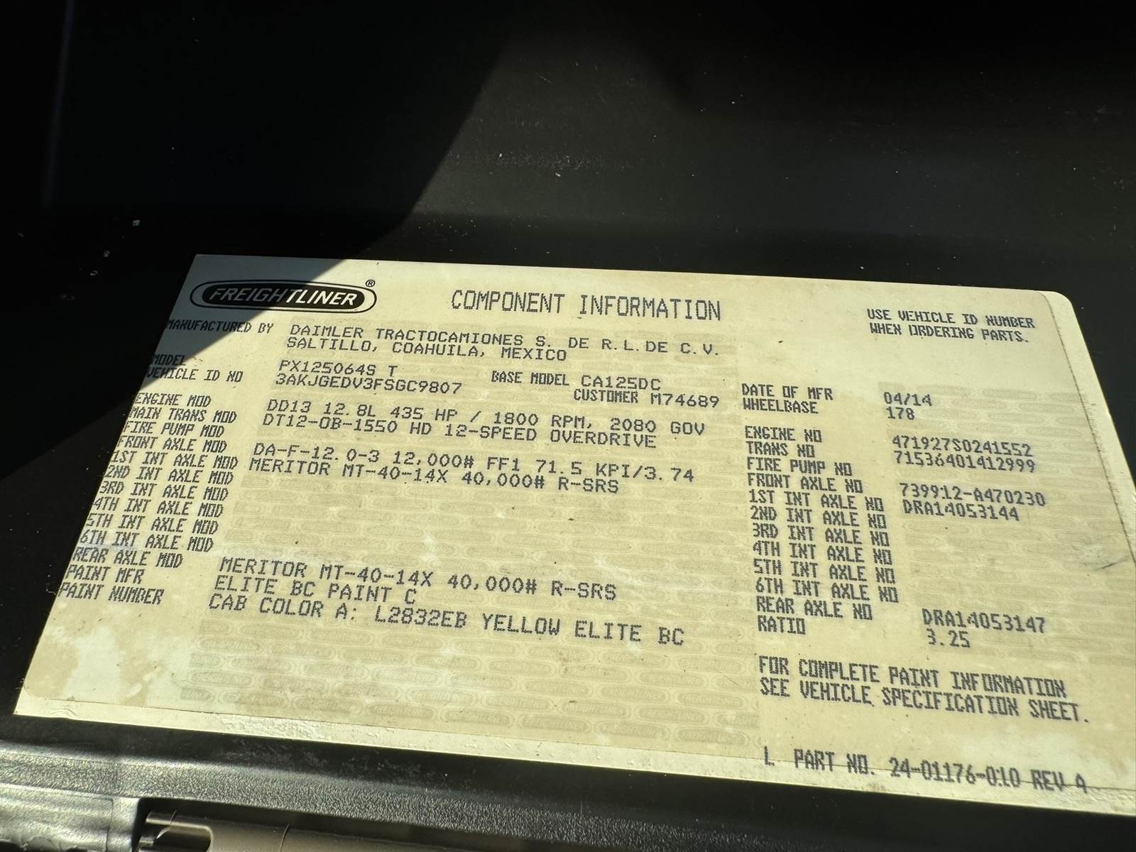 482,573 Miles, Detroit DD13 Engine, 525 H.P Engine Brake, DT12 Transmission, (Automatic), 40,000 Lb. Rear Ends, 3.08 Ratio, Air Ride...